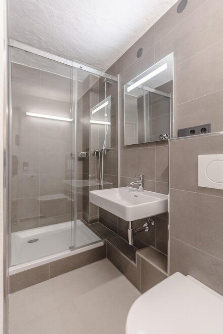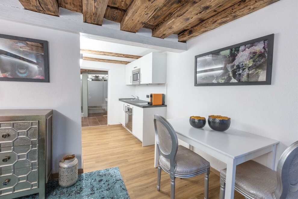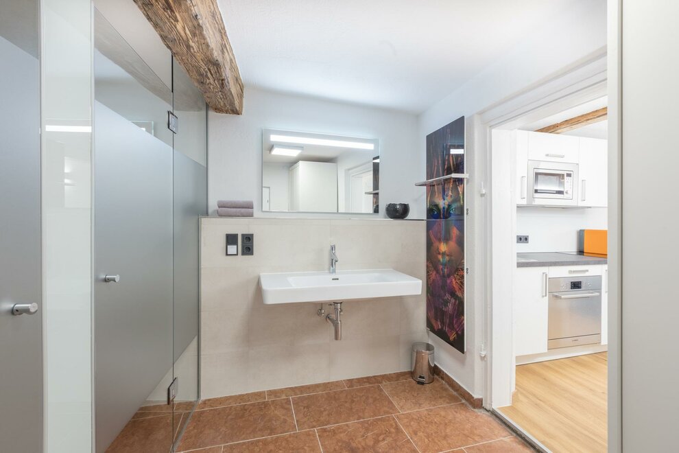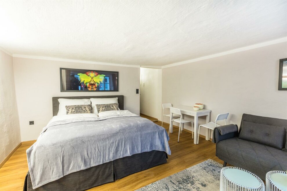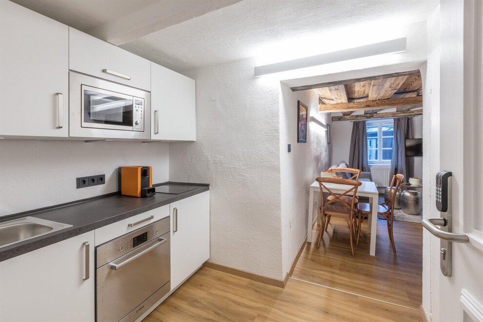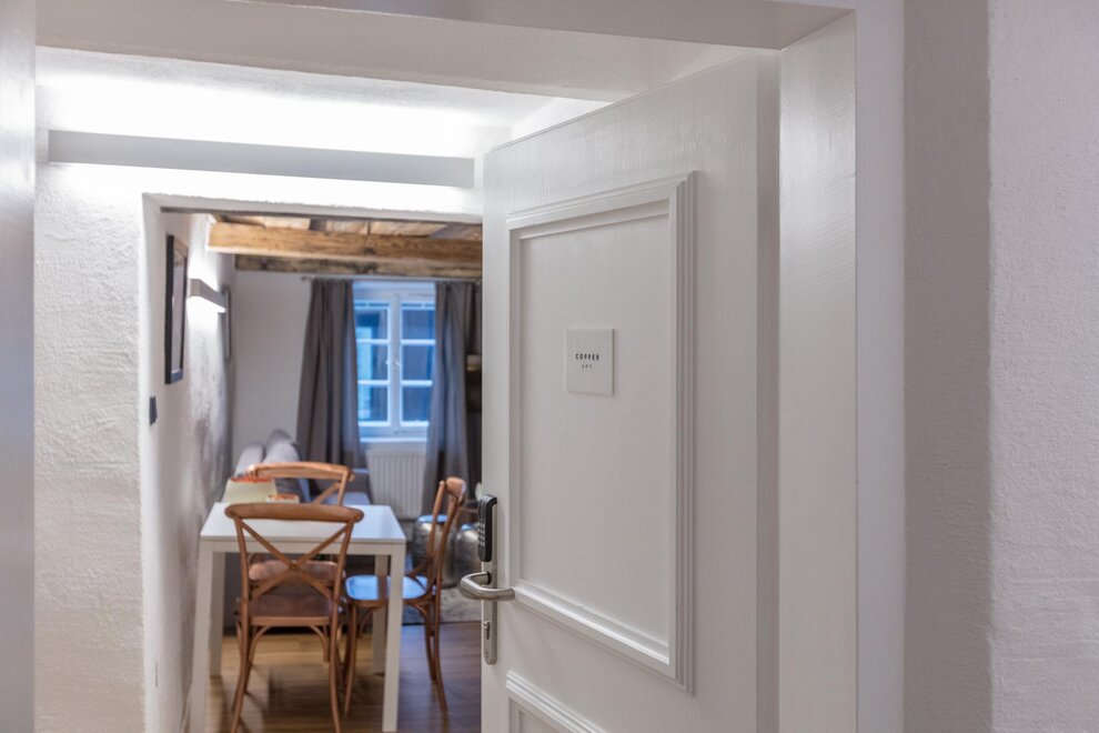 Dům postavený v roce 1540, historický a chráněný památkou, se skládá z 5 kompletně zrenovovaných a pečlivě navržených apartmánů a společné střešní terasy, která je přístupná všem a nabízí úžasný výhled přímo na pevnost a přes salcburské Staré Město. Díky centrální poloze se Stein-Lodge nachází jen kousek od většiny památek, jako jsou pevnost, salcburská katedrála, Mozartův rodný dům, Mirabellplatz, festivalový dům a ulice Getreidegasse. Stein Lodge se nachází v historické Steingasse a spojuje historickou atmosféru s moderním designem, podpořeným 25 uměleckými tisky současného umělce Jürgena Fuxe, které zdobí chráněný dům. Vzhledem k historické struktuře budovy nemá Stein-Lodge výtah, má variabilní výšky stropů a je vybaven historickými chráněnými dveřmi a okny. Moderně zrenovované prostory, přímo na skále Kapucínské hory, které jsou částečně viditelné i v budově, stejně jako umělecká díla, dodávají apartmánům jejich jedinečný kouzlo. Volně přístupná střešní terasa, s jedinečným výhledem na pevnost a Staré Město, doplňuje mimořádnou atmosféru Stein-Lodge. Steingasse se nachází přímo v srdci salcburského Starého Města a je ideálním výchozím bodem pro prohlídku památek, restaurace, nákupy a mnoho dalšího. Ubytování je zvláště vhodné pro páry, jednotlivce, obchodní cestující, rodiny a skupiny. Díky centrální poloze se dostanete k salcburské katedrále za 400m, Mozartovu rodnému domu za 500 m, ulici Getreidegasse za 600 m a pevnosti za 800 m. Snadno a rychle pěšky. Apartmány Stein-Lodge nabízejí: Zdarma ručníky a ložní prádlo Kompaktní kuchyni s mikrovlnnou troubou s grilem, toustovačem, sklokeramickou deskou, ledničkou, kávovarem Cremesso, nádobím, příbory, sklenicemi a hrnci Fén Zdarma vysokorychlostní internet Kabelovou TV a reproduktory s dokovací stanicí Žehličku (na vyžádání) Dětskou vysokou židli zdarma (na vyžádání) Dětskou postýlku zdarma (na vyžádání) Všichni naši hosté mají přístup k: Střešní terase včetně jedinečného výhledu Bezplatnému používání pračky a sušičky Bezplatnému používání bicyklů