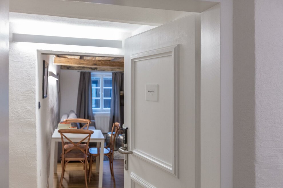 COPPER ROOM o rozloze cca 30 m² se nachází ve 3. patře Stein Lodge, zahrnuje boxspring - dvoulůžko, stůl se 2 židlemi, pohovku na rozkládání s konferenčním stolkem. Plně vybavená kompaktní kuchyň s varnou deskou a kávovarem Cremesso. Koupelna disponuje sprchou, WC a umyvadlem.