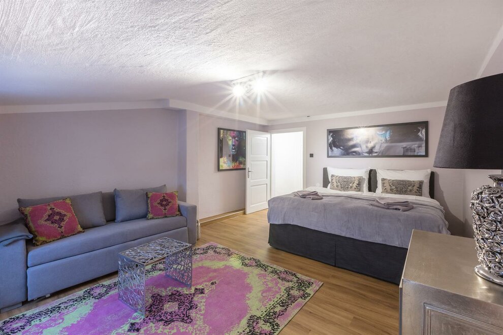 Exkluzivní a prostorný ROCKSTAR APARTMENT zahrnuje více než 75 m² - nad střechami Salcburku. Tato prémiová suita se nachází v 4. patře Stone Lodge a nabízí spoustu místa a některé zvláštní výhody – jako vlastní jídelnu, samostatnou kuchyň, dvě prostorné obývací ložnice, další ložnici pro jednu osobu a přímý přístup na střešní terasu s úchvatným výhledem na historické centrum Salcburku. Vlastní jídelna nabízí dostatek místa a zvláštní atmosféru. Samostatná kuchyň je plně vybavena sklokeramickou varnou deskou, mikrovlnnou troubou, chladničkou, myčkou a kávovarem Cremesso. Obě prostorné obývací ložnice mají každá boxspringové dvojlůžko a pohovku na rozložení.