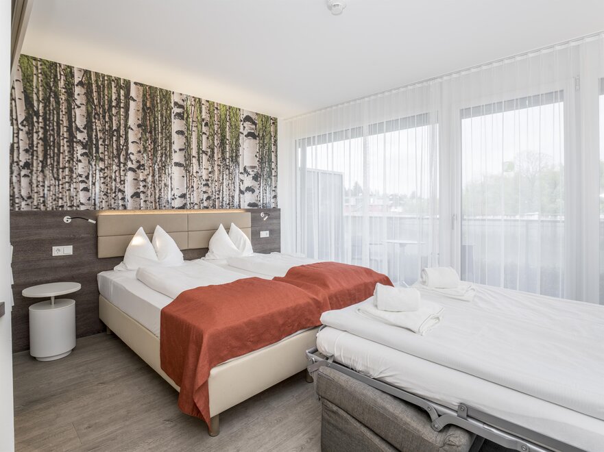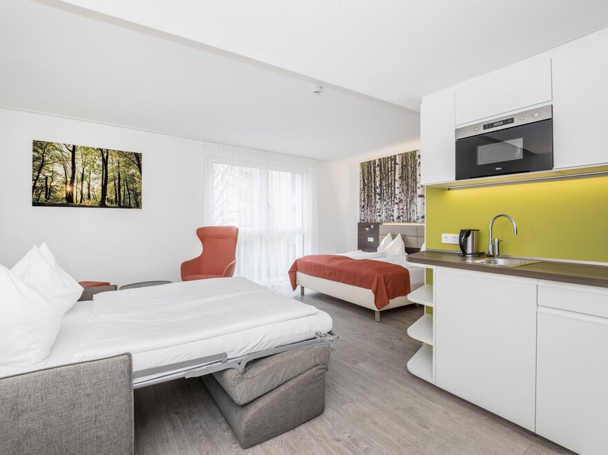 V ekologickém hotelu Eco-Suite Salzburg na vás čeká prostorných 44 suit. Pokoje o velikosti 19-42 m² nabízejí místo pro 1-4 osoby. Právě pro delší pobyty a/nebo rodiny jsou prostorně zařízené pokoje Eco Suite+ vynikající! Mají přibližně 32 m² a jsou vybaveny manželskou postelí o šířce 180 cm. Vybavení: rozkládací pohovka, flexibilně umístěná plochá televize, malý kitchenette, lednička, bezplatné Wi-Fi, bezplatné parkoviště, rychlovarná konvice a stůl.