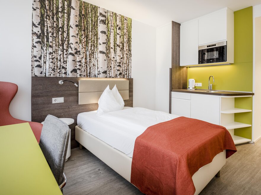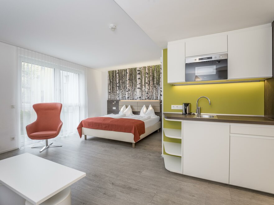 V hotelu Eco-Suite Salzburg na vás čeká prostorných 44 suit. Pokoje o velikosti 19-42 m² nabízejí místo pro 1-4 osoby. Pokoje Eco Suite poskytují prostor pro 1-4 osoby. Prostorně zařízené pokoje o velikosti přibližně 26 m² mají 2x 90 cm postele nebo 180 cm manželské postele. Mnoho pokojů má balkon s nezapomenutelným výhledem na pevnost. Vybavení: rozkládací pohovka, flexibilně umístěná plochá televize, malý kuchyňský kout, lednice, bezplatné Wi-Fi, bezplatné parkování, rychlovarná konvice a psací stůl.