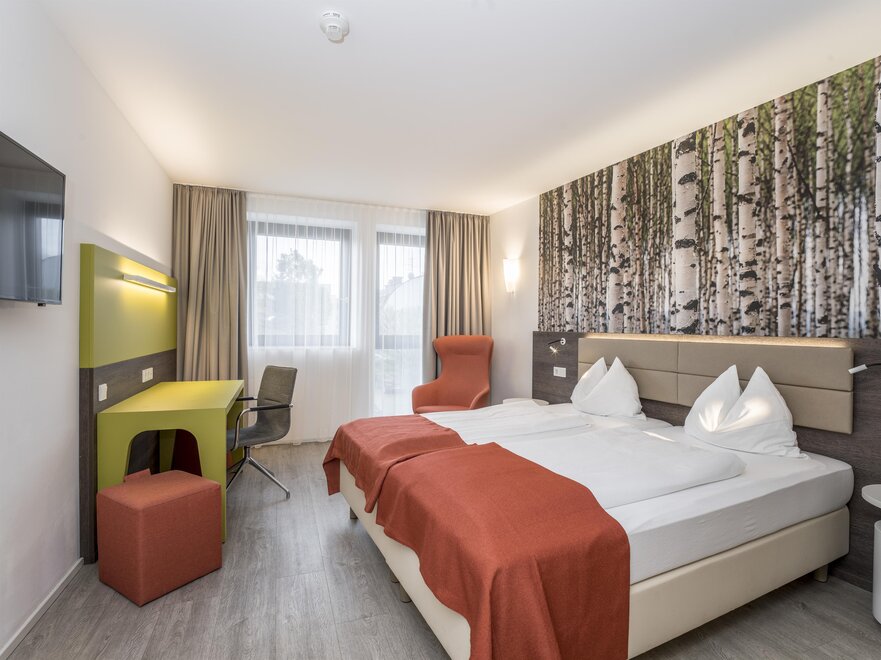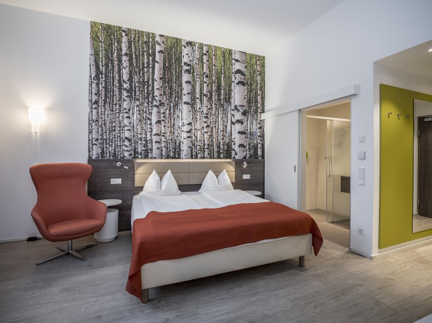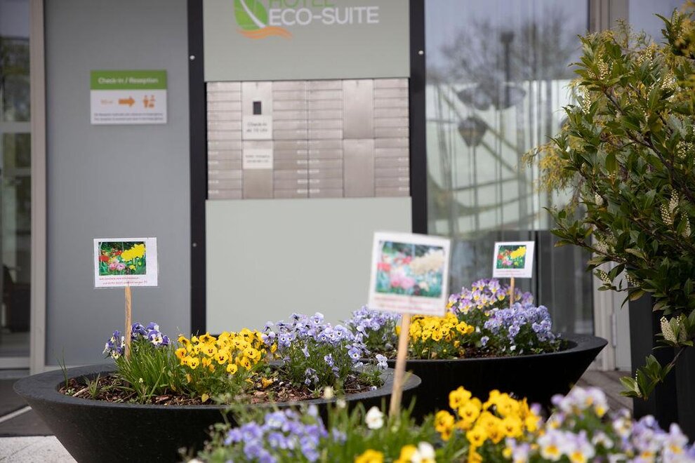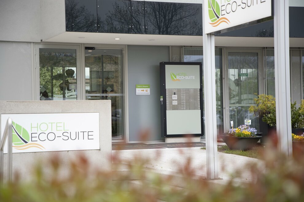 Své inovativní konstrukcí, prostornými pokoji a centrální, klidnou polohou se Eco-Suite Hotel profiluje jako atraktivní 3*** městský hotel s výhodným poměrem cena/výkon. Pro návštěvy veletrhů, konference nebo jednoduše klasickou městskou dovolenou nabízí hotel ideální polohu. Centrum města je pěšky dostupné za přibližně 20 minut a na kole za 10 minut (cyklostezka hned za domem). Hlavní nádraží je vzdálené asi 20 minut pěšky nebo autobusem číslo 6. Všechny 44 suity jsou vybaveny následovně: malá kuchyňka, lednička (není naplněná), útulné posezení k jídlu a práci, flexibilně umístěná plochá TV, zdarma Wi-Fi a zdarma parkování.