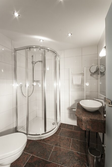 Dusche oder Badewanne, Separates WC, Dusche, WC, Fließendes Kalt- und Warmwasser