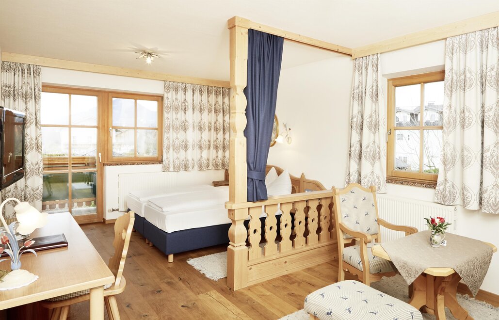 Wohnen Sie in unseren exklusiven und sehr geräumigen Junior Suiten, über 2 Etagen mit 2x FlatScreenTV, Dusche oder Bad / WC, Balkon, KabelTV, 4 Sky-Kanäle, Safe, wifi-Internet etc. Wunderbare Aussicht auf die Berge und Felder rund um das Hotel. Viel Platz und Raum, auch für Familien geeignet.