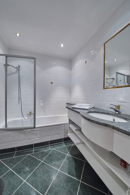 WC, Dusche oder Badewanne, Fließendes Kalt- und Warmwasser, Bad