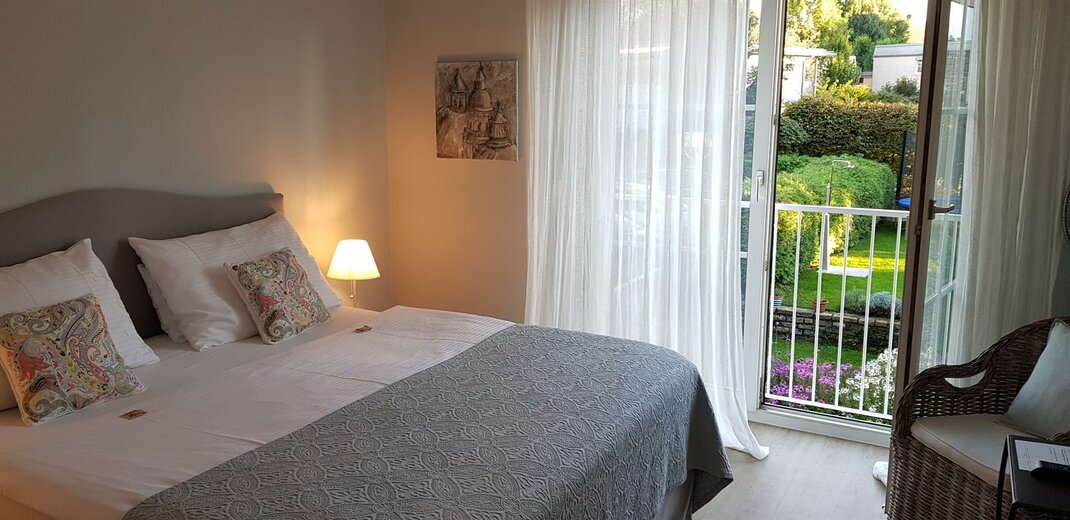 Minisuite mit Blick auf den Garten! Unser Lieblingszimmer mit französischem Balkonfenster in den Garten.