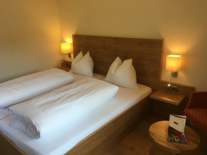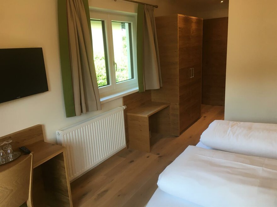 Unsere neuen Doppelzimmer in der Dependance unseres Hauses (gegenüber dem Haupthaus), mit schöner Holzeinrichtung, Holzboden, Schreibtisch, Minibar, Balkon, TV, Internet, Fön