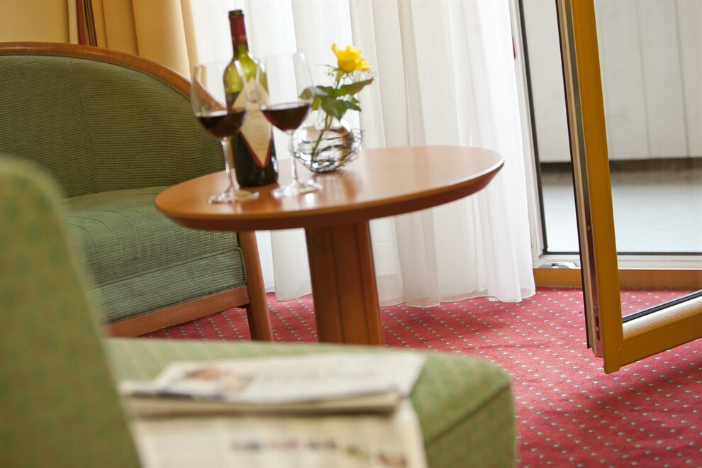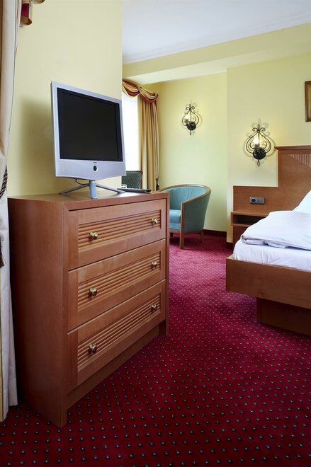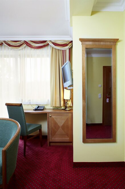 Einzelbett, nobler Standard, Einrichtung in Holz, Teppichboden, Flatscreen-Fernseher, Minibar, Fön, Sitzecke, teilw.Balkon, Tel. - gemütl. Atmosphäre, Internetanschluss, Schreibtisch