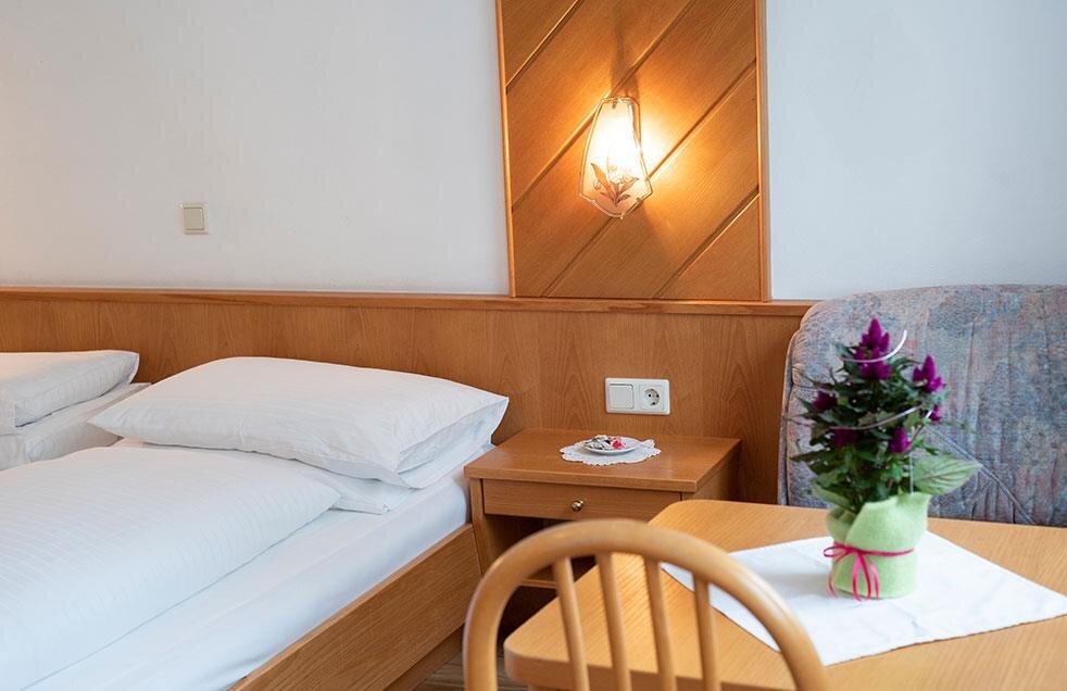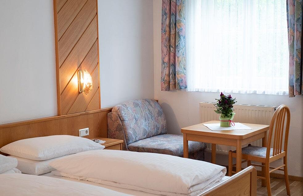 Gasthof im traditionell österreichischen Stil, ca. 4km vom Zentrum, Busverbindung im 10-Minutentakt bzw. abends und am Wochenende im 20-Minutentakt. Gutbürgerliche Küche mit Hausmannskost. Die Pension befindet sich direkt hinter dem Haupthaus und ist nicht an der Bundesstraße. Helle freundliche Zimmer mit WC/Dusche und TV. Zum Teil mit Blick ins Grüne.
