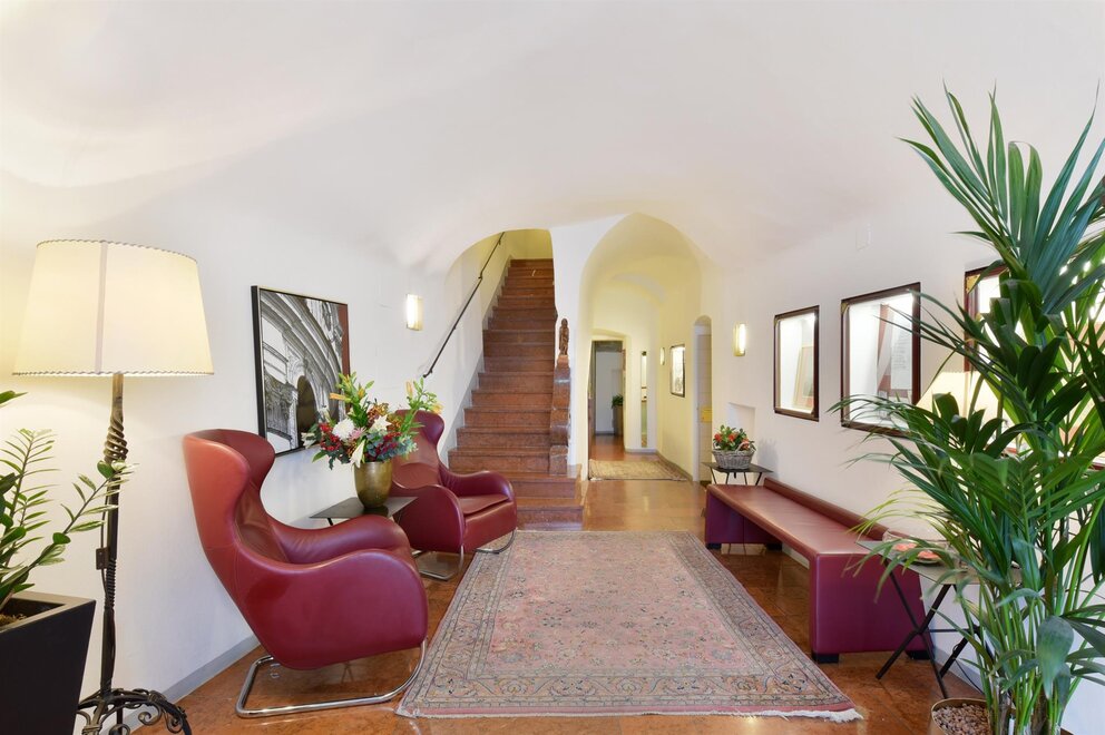 Experience the utmost comfort in our spacious suite of approximately 39 m², featuring a luxurious king-size bed, multiple elegant seating areas, a cozy sofa, and an exquisitely crafted historic writing desk. The modern bathroom offers a walk-in shower and a premium bidet toilet, ensuring an extra level of comfort.