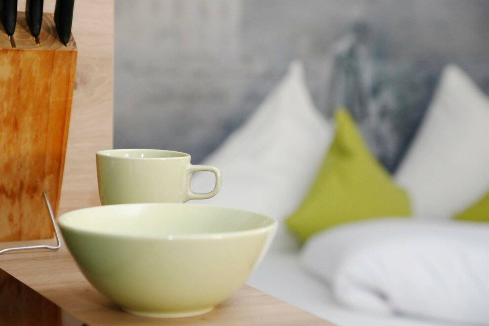 my rooms / my studios in the size of about 15 m², offer individual enjoyment for holiday guests as well as business travellers. The furniture strikes by charm, a wonderful sense for colours and with a lot of enthusiasm right down to the detail a cosy atmosphere with trendy living comfort has been created. The 24/24 h accessible and free of charge internet access belongs to my standards as well as a fully equipped kitchenette with various appliances as: ¢ Coffee machine ¢ Microwave ¢ Stove and fridge These amenities help to meet your personal requirements regarding mealtimes and preparation of food. Satellite-TV, the telephone with direct-dial function and the hairdryer in the shower room add to your comfort.