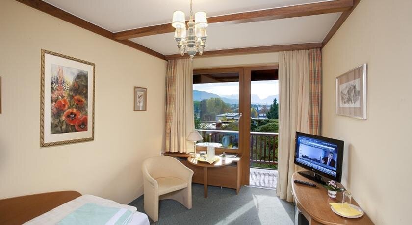 Elegant standard double rooms (all our rooms are non smoking) ca. 18 qm, for a stay for two with private bathroom and toilet, hairdryer. - most of them with balkony and seat - flatscreen TV with multilingual satellitechannels - free w- lan - phone - refrigerator - tea- and coffee machine Beautiful view on the mountain scenery of Salzburg.