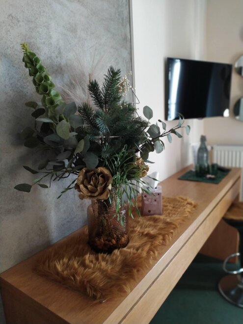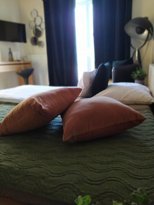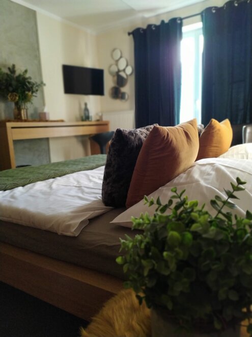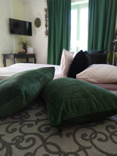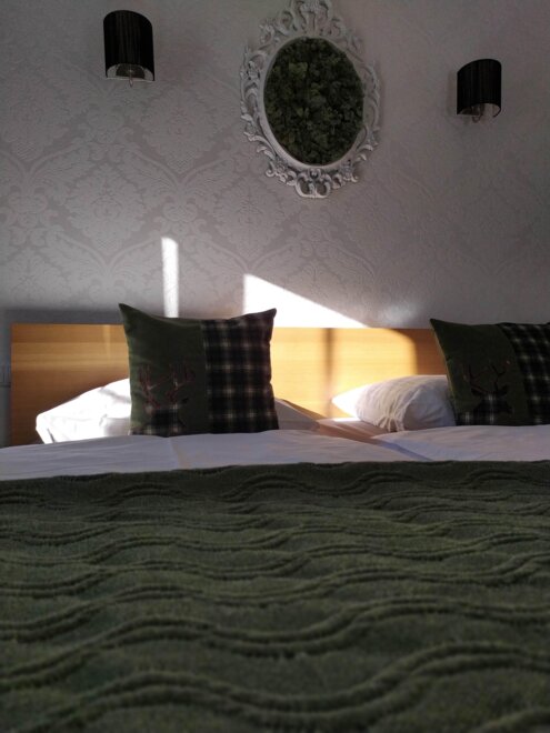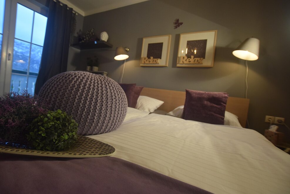 All rooms are very stylish, individual, and designed with great attention to detail. They feature a south-facing balcony with a stunning view of the adjacent mountain range and the Plainburg ruin. Furthermore, our rooms offer a bathroom with shower/WC, hairdryer, toiletries, towels, upon request, hypoallergenic bedding, flat-screen TV, Wi-Fi access, a glass bottle filled daily with table water, as well as a small culinary surprise, and much more.