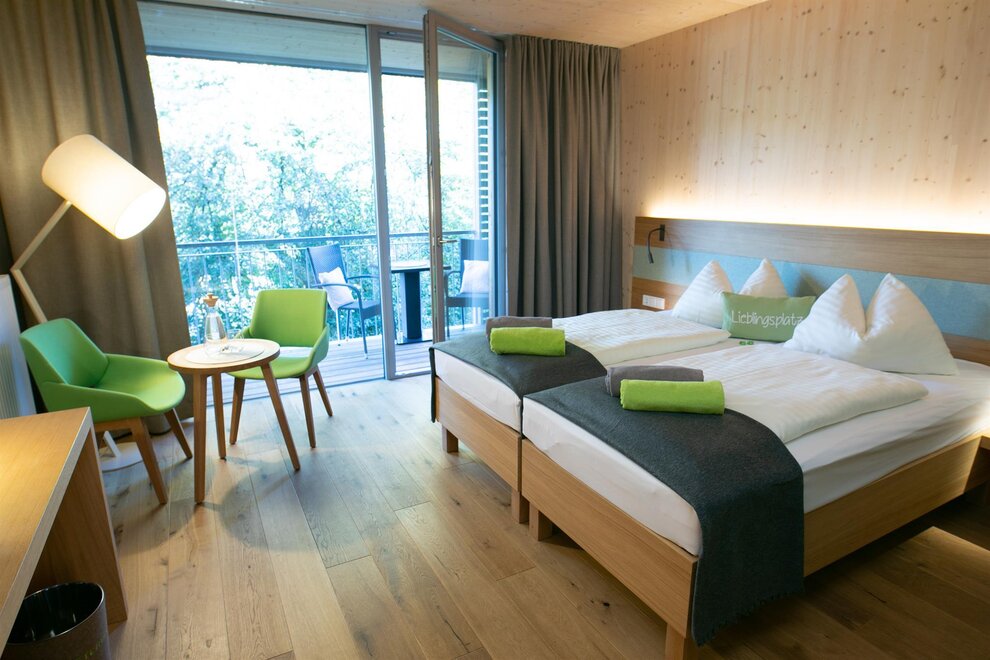 The 56 comfortable rooms offer plenty of space and ensure a relaxing stay. The newly built tree-top rooms give a unique natural atmosphere due to the wooden modular construction.