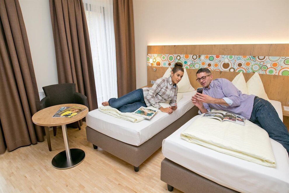 All single rooms are equipped with cable-tv, radio, telefon, internet connection free of charge, hair-dryer, room safe and minibar. All eight single rooms are barrier free (four rooms with an additional bed behind the other and non-smoking-rooms.