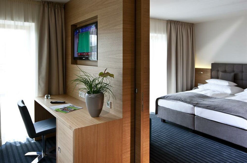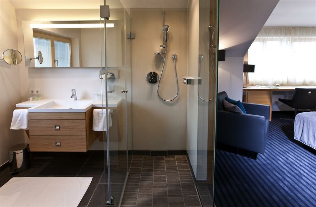 Modern, sleek furnishings with stylish decorations in lavender or taupe The spacious rooms with high-quality furnishings boast a combination of modern design and cosy atmosphere. Some of the rooms have a balcony. •Comfortable bed •Spa bath or shower, separate toilet, hairdryer, makeup mirror •Telephone •Flat-Screen TV (HDTV, cable) •Mini bar •Safe •Desk •partly Armchair or Sofa •Wireless internet •Air-conditioning, some rooms have a balcony .
