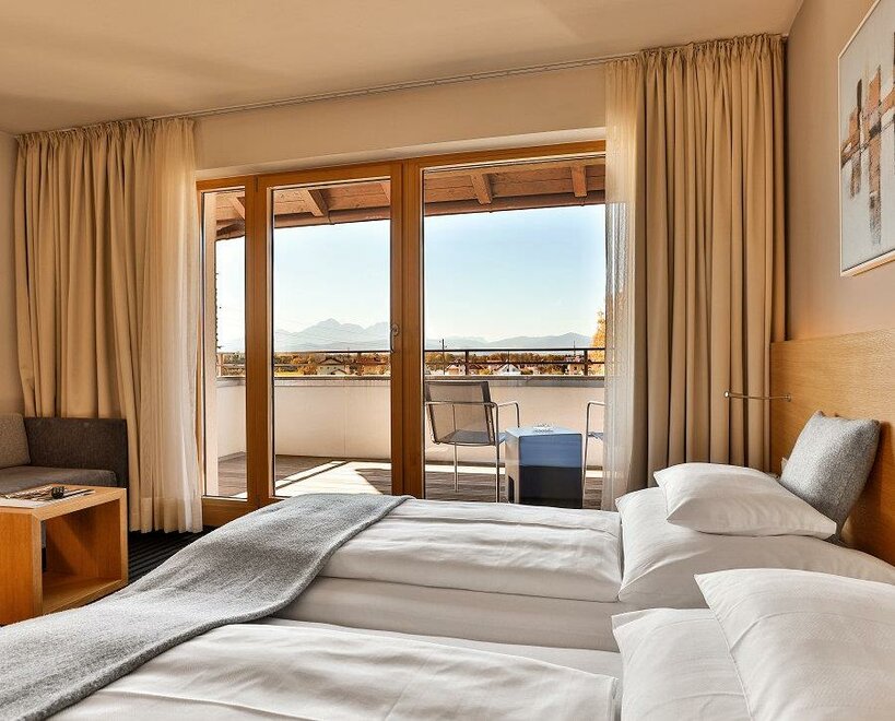 Located just minutes from the city of Salzburg, our familyrun-hotel offers an unforgettable stay. Our 57 hotel rooms are an oasis of wellbeing, modern and comfortably furnished, with a view of the countryside. Our Spa offers a sauna, solarium, steam room and fitness room and ist available exclusively for our guests. The special flair of the cuisine, featuring a rich diversity and fresh local produce, make a visit to our restaurant a memorable experience. A place for encounters are our hotel bar and the vinotheque. What else? - large, free private parking lot, Carrera racetrack, local train service to Salzburg every 30 minutes, free internet access and lovely outdoor dining.