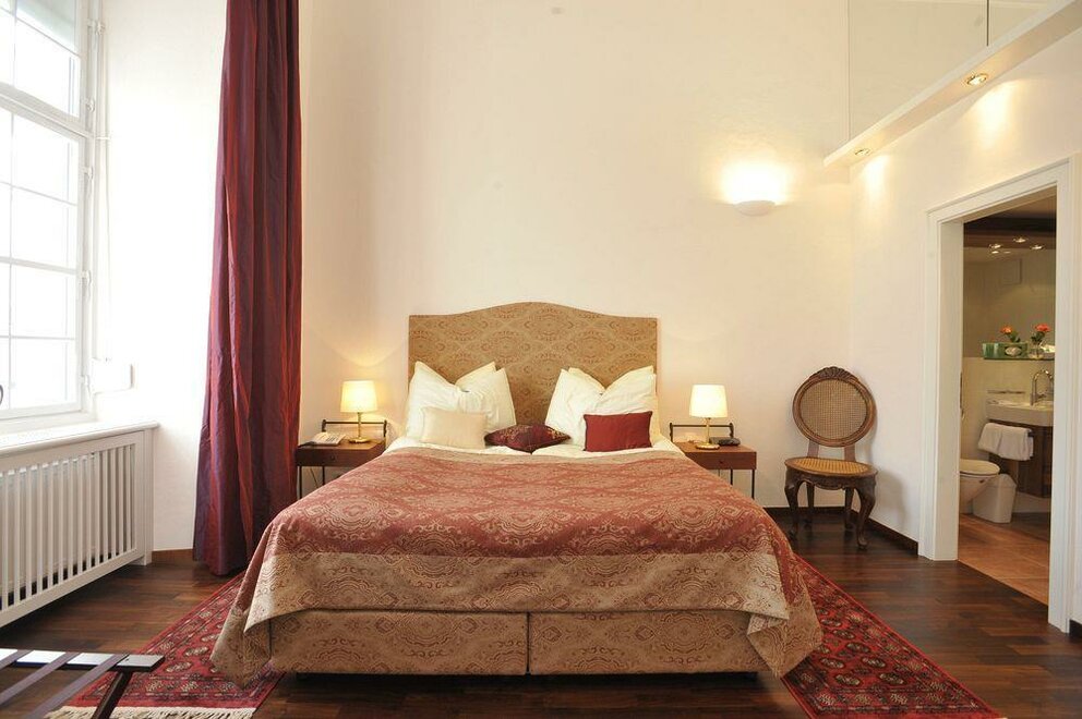 Our historic Standard Suites in the Schloss mostly have separate living and sleeping rooms and feature views either over the Schloss park or the fortress Hohensalzburg. On request Standard Suites can be connected with a Superior Suite. - mostly separate living and sleeping rooms - for 1-4 people (max. 2 adults + 2 children under the age of 16) - view over the Schloss park or the fortress Hohensalzburg - Daily breakfast is served in the elegant halls of the Schloss All suites are inclusive of a bottle of Prosecco, fresh fruit, and flowers on arrival, magazines, daily cake and coffee/tea in the Meierhof Café, full buffet breakfast served in the elegant halls of the Schloss, a bottle of mineral water, Wi-Fi, use of bicycles and the fitness center, mini golf, welcome drink (at the adjacent Weiher Wirt restaurant), parking, and access to the adjacent swimming pool (seasonal). Price per room and night (max. 2 adults + 2 children under the age of 16). Extra bed EUR 60,00 per night and person (max. age 16 years). Room facilities: Bathroom with shower or bathtub, Quality Hairdryer, Amenities, Bathrobe, Slippers, Flat Screen TV, Tlephone, Safe, Iron & Ironing board, Fridge Room Size: 25 - 47 m² Bed Size: Double bed (180 x 200 cm)