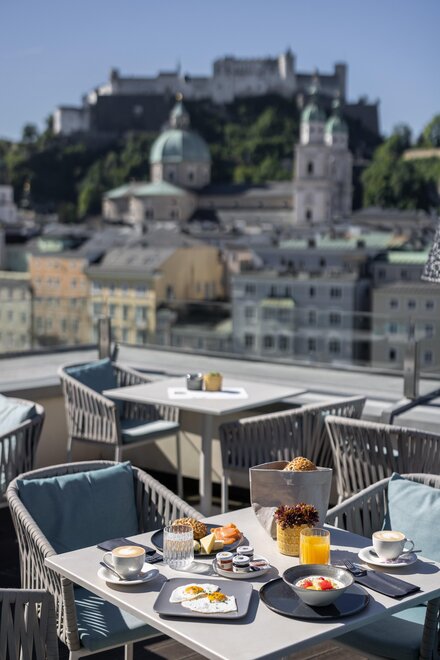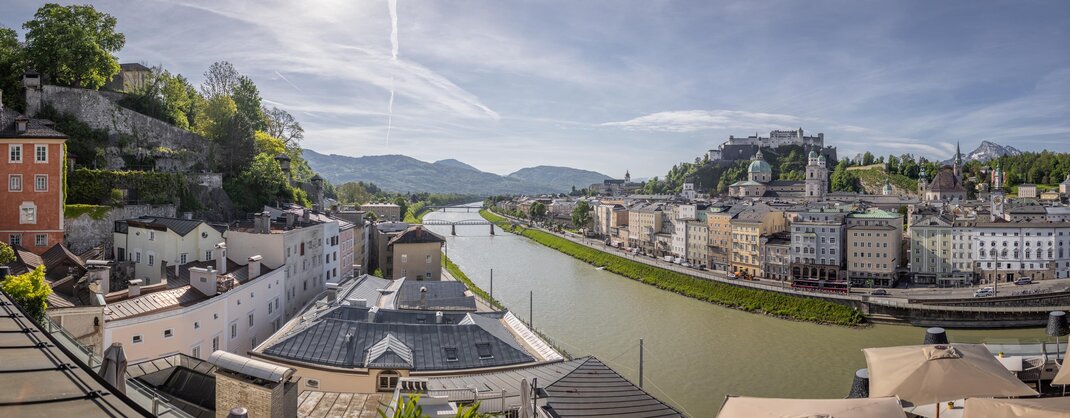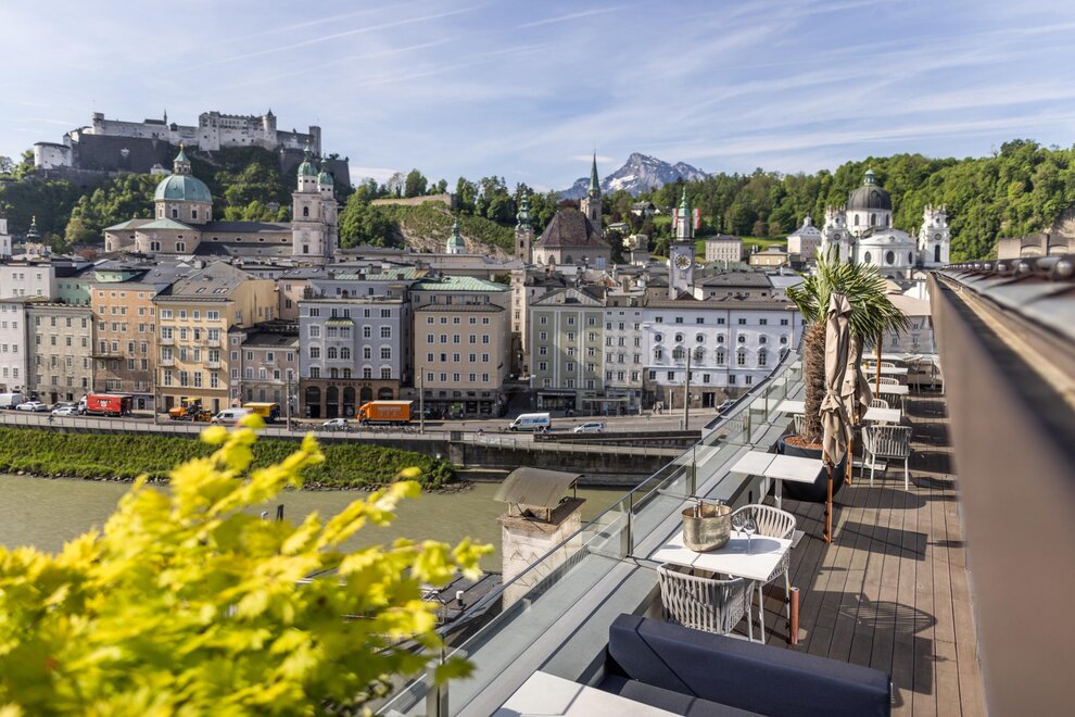 The unique panorama of the world cultural heritage city Salzburg - more beautiful than from any other place in all of Salzburg. Located directly in the heart of Salzburg's old town centre, Hotel Stein welcomes discerning tourists and city travellers. Hotel Stein is rich in tradition and has undergone extensive renovation work. It now presents itself in a stylish, designer look that unites the best of the 1950s with design classics of today. Experience the best view overlooking the mozart and festival city's historic old town centre from the roof terrace at the Steinterrace café.bar.lounge. The entire hotel is fully air-conditioned and all 56 rooms are equipped with an air-conditioning system to make sure you have an agreeable stay at Hotel Stein. The mozart rooms or one of the designer rooms overlooking salzburg is the right choice for those who want a view of one of the landmarks of the city - the majestic “Hohensalzburg” fortress - right when they wake up. With 56 rooms Hotel Stein is not just perfect for holidays in Salzburg - business guests will enjoy their stay here as well. Smoking is allowed on the terrace.