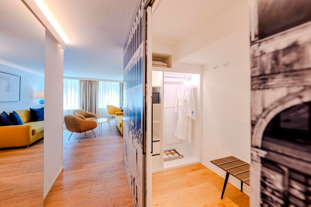 Due to their commodiousness and separated lounge and sleeping area these rooms are ideal for a longer, luxurious stay in the mozart city of salzburg.