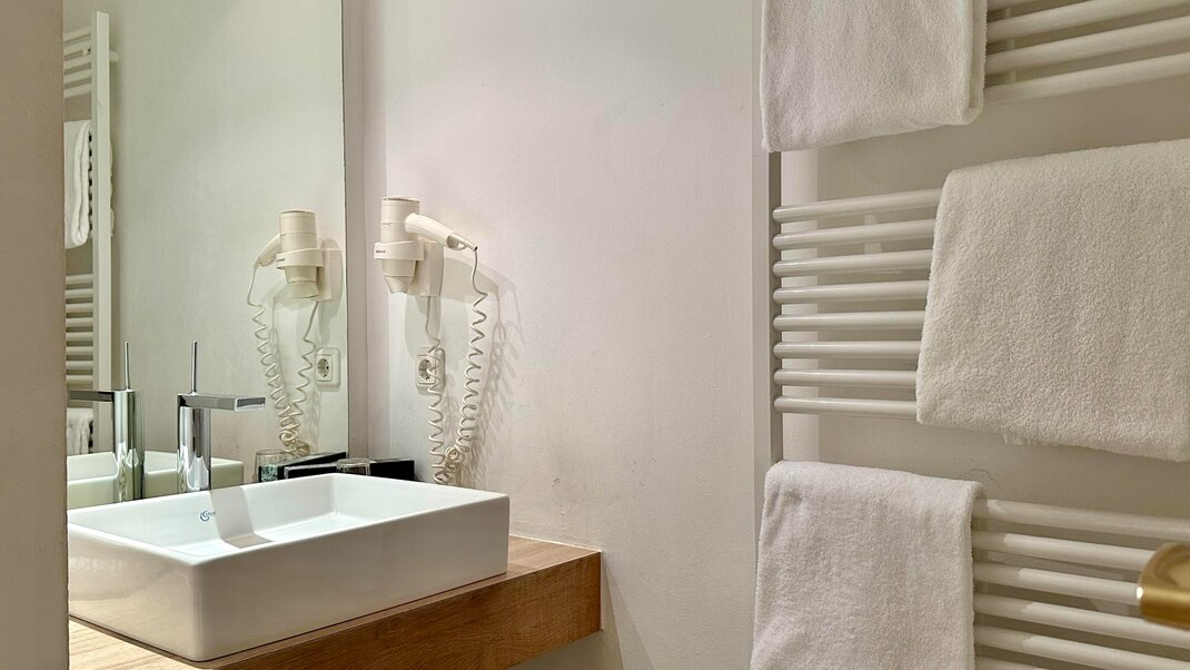Very quiet, courtyard facing suite (appr. 35 m2) with garden view and everything you need to feel comfortable: modern furnishings, separate living room, generous bath and/or shower/WC, hair dryer, LCD cable TV, telephone and Wifi & lots of room to move...