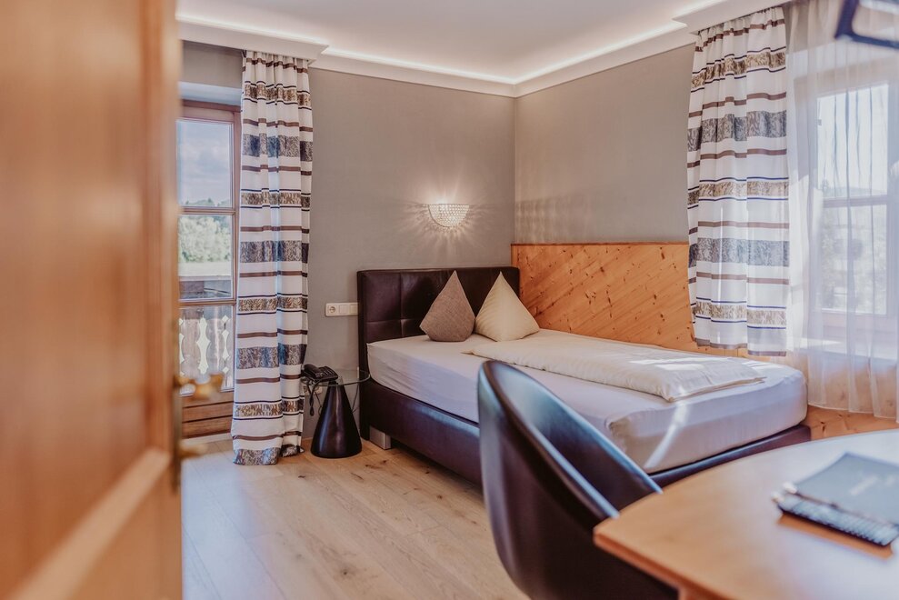 A 4-star country hotel designed in a typical Salzburg style. 40 rooms and apartments/studios (bath/WC and/or shower/WC, hairdryer, bath robes, safe...), dining rooms for 20 - 60 people, regional and seasonal cuisine, half-board dinner with 4-6 courses, salad buffet, breakfast buffet.