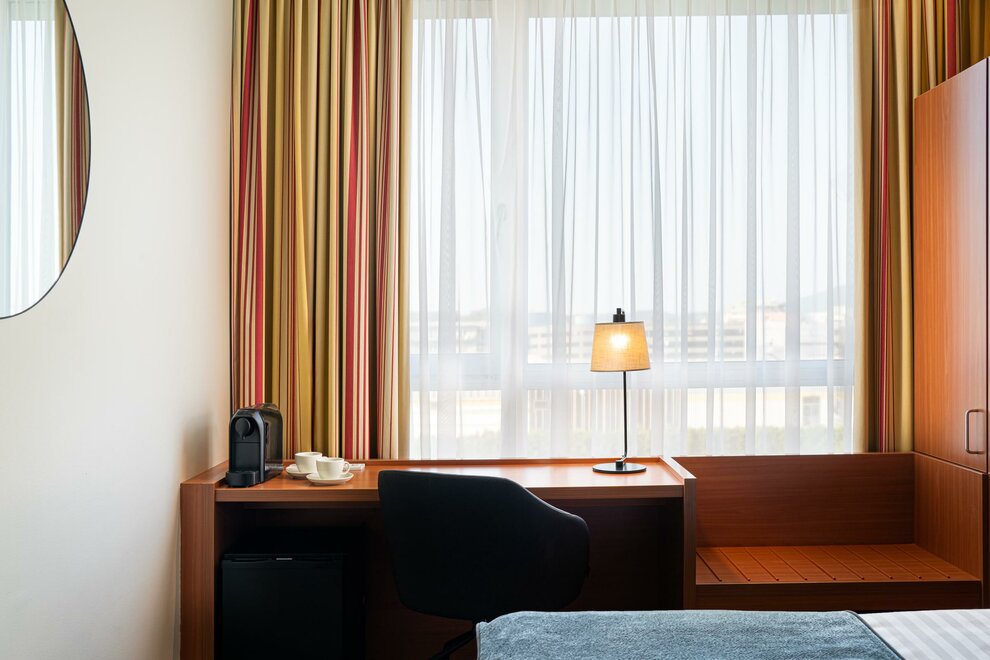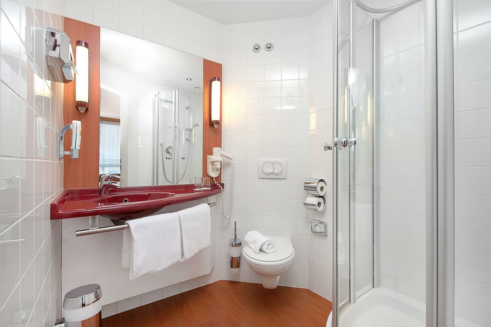 Our Business Rooms are very spacious and are additionally furnished with a leather sofa and a large desk. Naturally, these rooms also have a large double bed (1.6 x 2 m), a 32'' Full HD-LED TV, internet access (WLAN), and a bathroom complete with shower, toilet, and hair dryer.