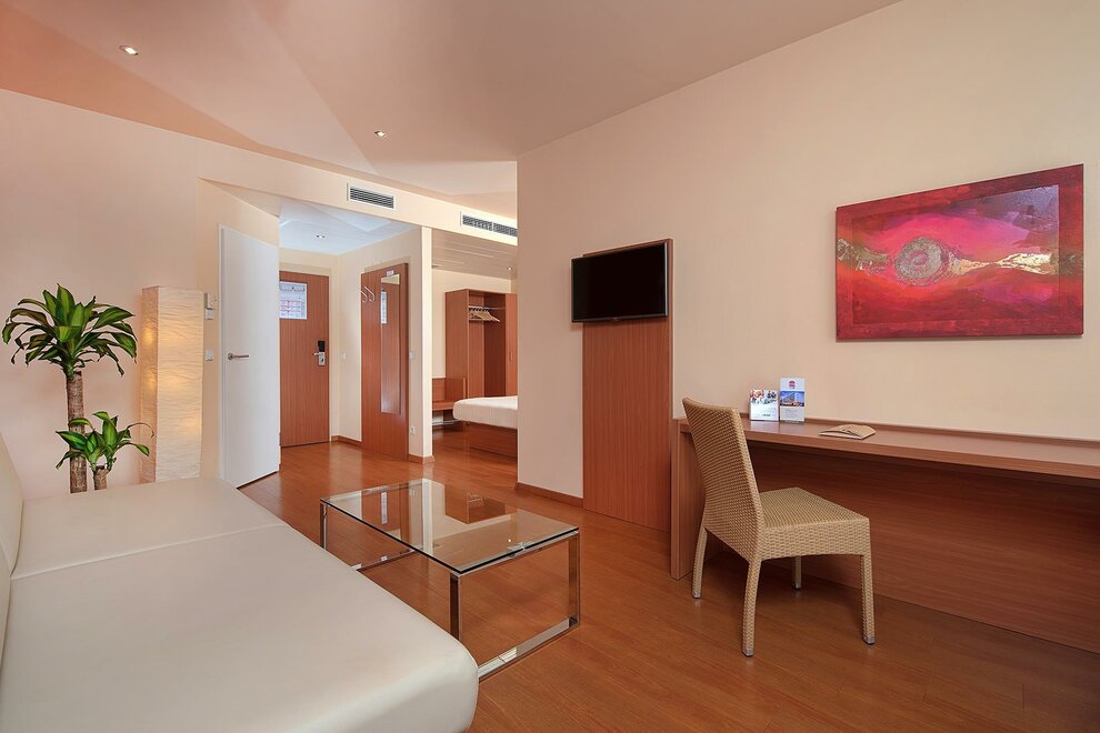 Suites have separate living and sleeping areas. A dressing table is provided in addition to the desk. The 32'' Full HD-LED TV's swivel so that you can watch television on the sofa or in bed. Naturally, our suites are also furnished with internet access (WLAN), and a bathroom complete with shower, toilet, and hair dryer.