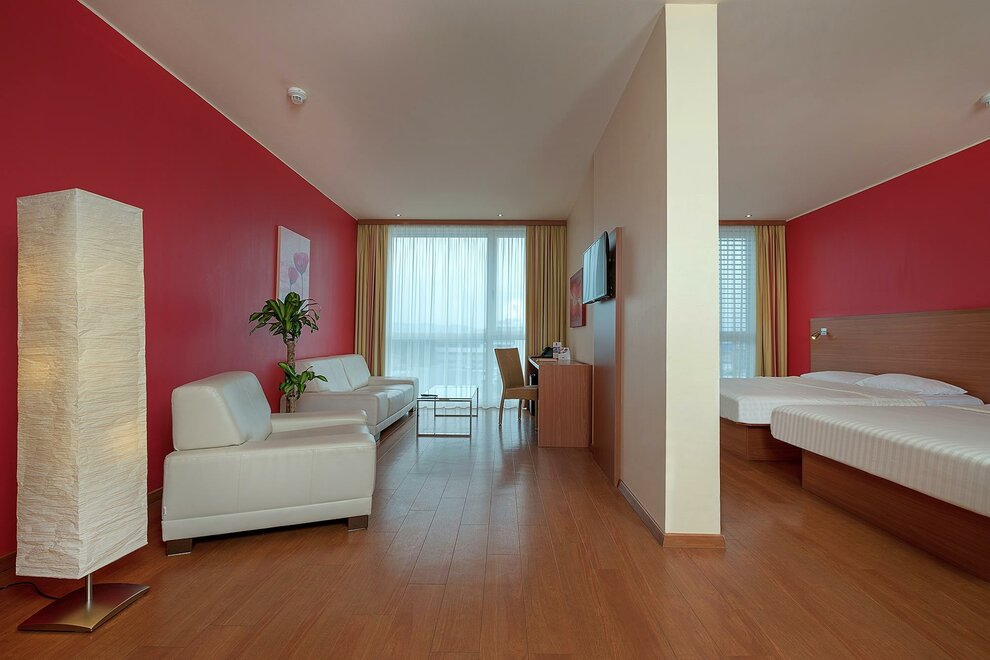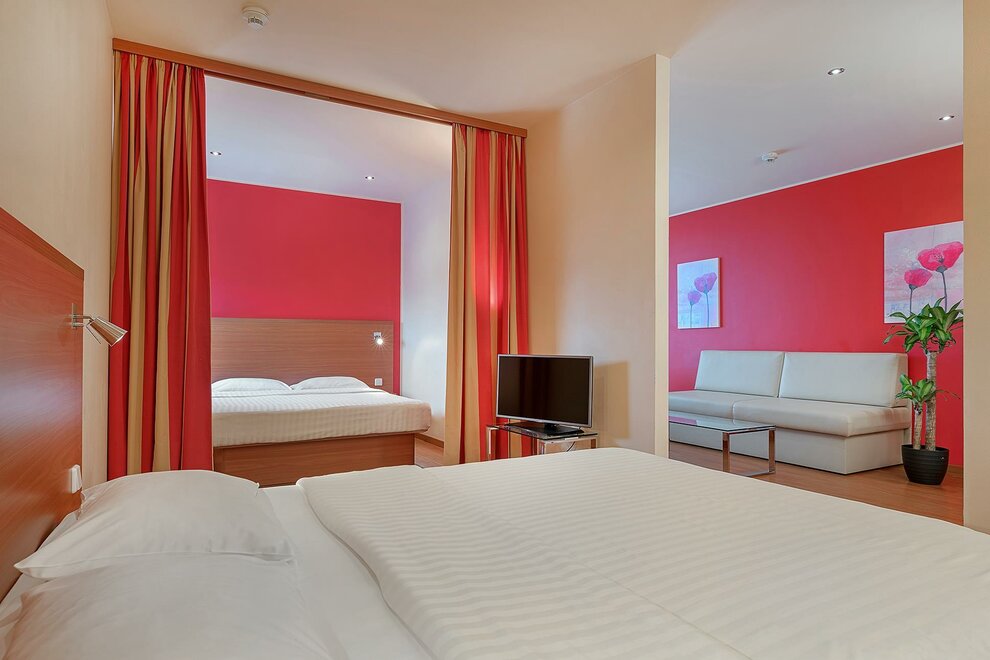 Family rooms are furnished with 2 double beds and can be occupied by up to 4 guests. Even though the beds are comfortably large, there's still plenty of space in this room. These rooms also feature a 32'' Full HD-LED TV, a desk, free WLAN access, and a bathroom complete with shower, toilet, and hair dryer.