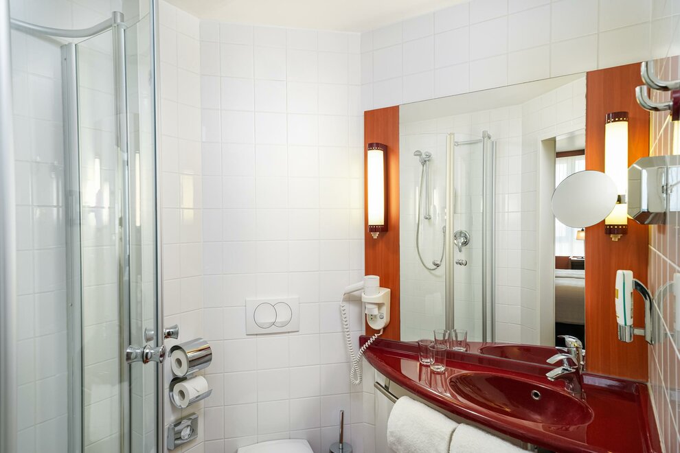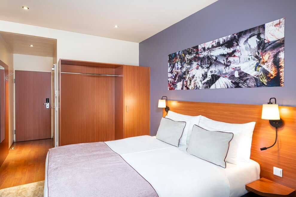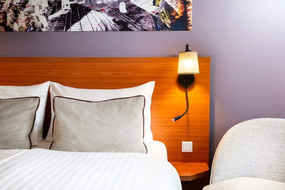 Standard rooms are furnished with a large double bed (1.6 x 2 m), mini-refrigerator, 32-inch LCD Full HD-TV, desk, internet access (WLAN), and a bathroom complete with shower, toilet and hair dryer. Our first-class modern furnishings and the top quality of our beds ensure maximum comfort.