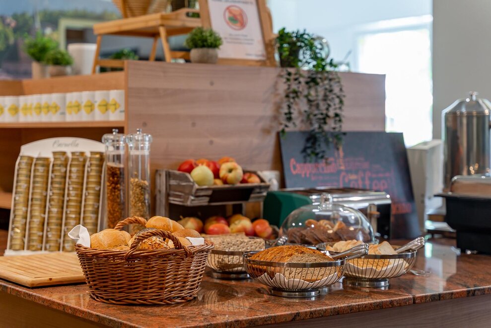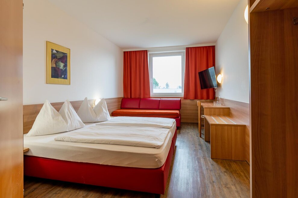 Our family-friendly deluxe and business rooms, suitable for people with allergies, are equipped with a shower/WC/sat TV/free WiFi; the hotel has an elevator and free customer parking. An abundant breakfast buffet is included in the room rate. 1 child from 0-2 respectevily from 2 -12 years stays free in room with 2 full-paying guests.