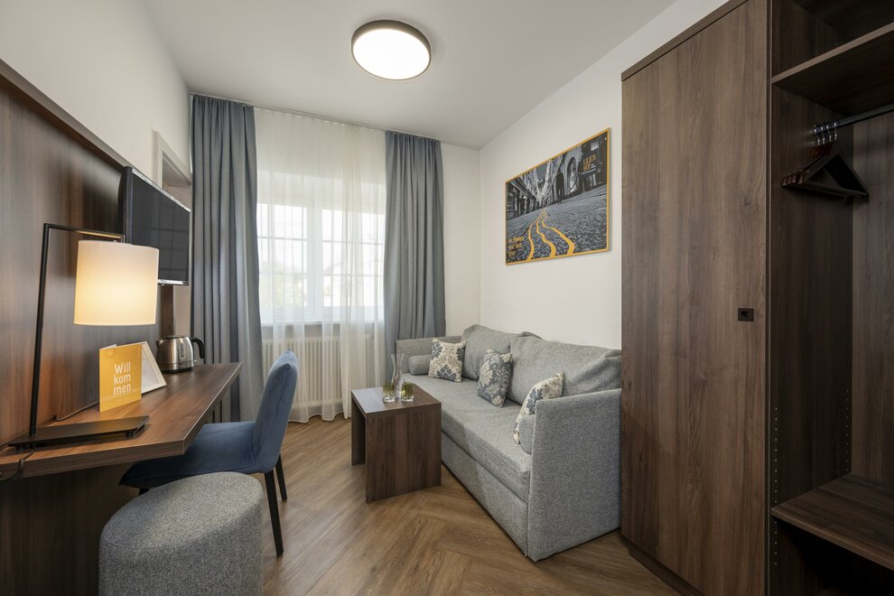 In addition to a spacious double bed, the premium category also offers a (pull-out) couch as a sleeping option . Explore the sights of the city of Salzburg or the breathtaking nature of the surrounding area during the day, and return to your cozy premium room in the evening to relax and recharge your batteries.