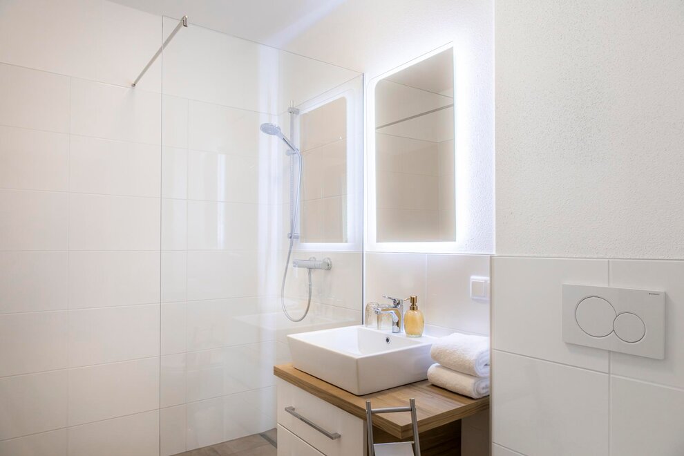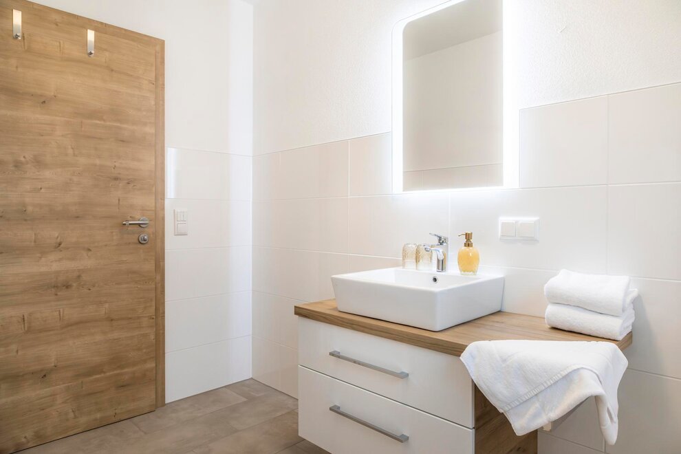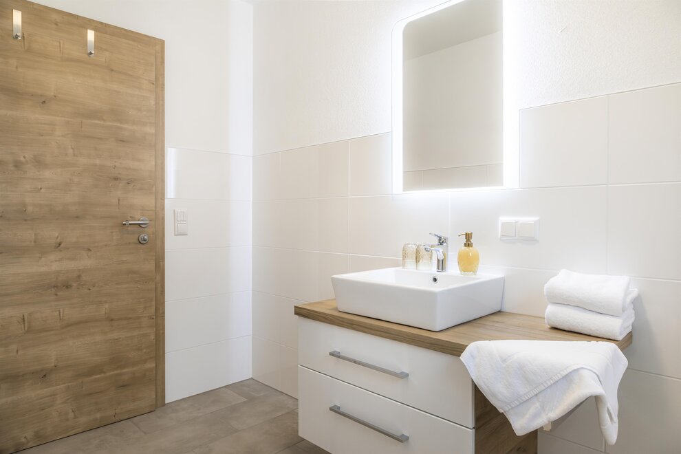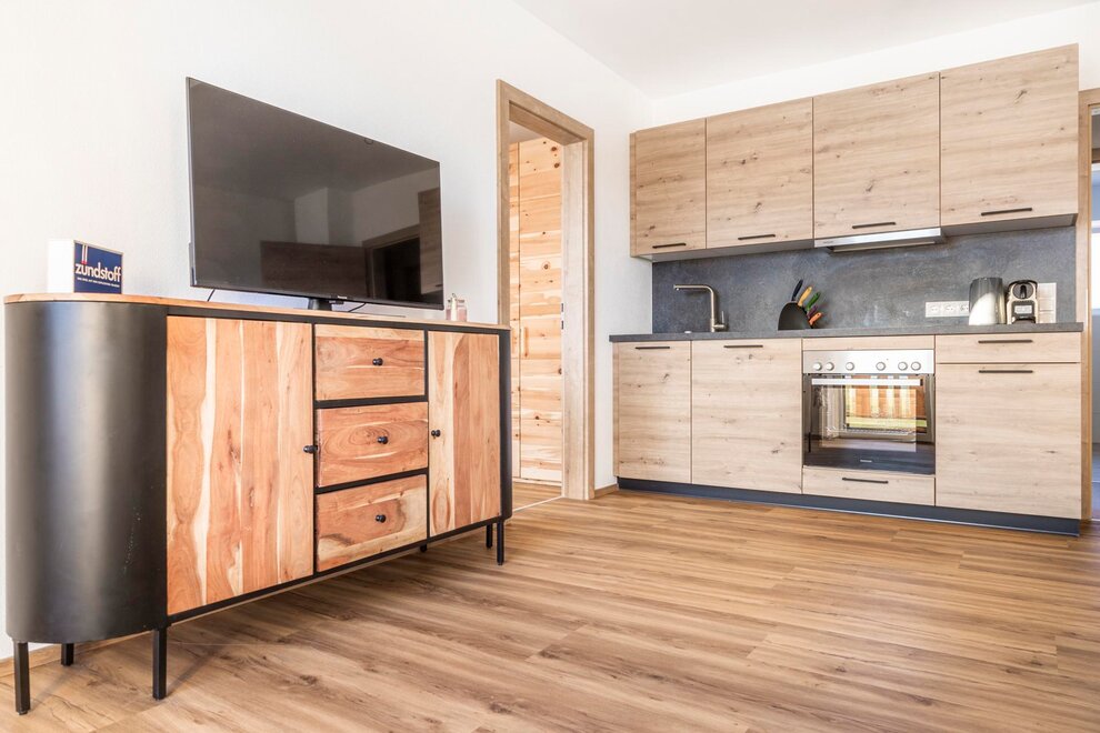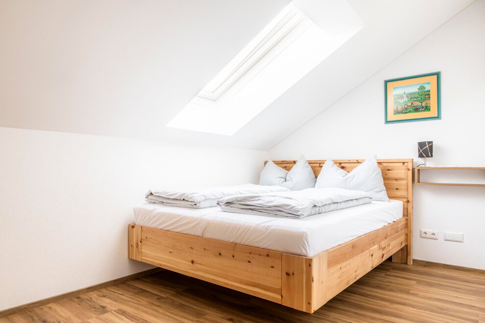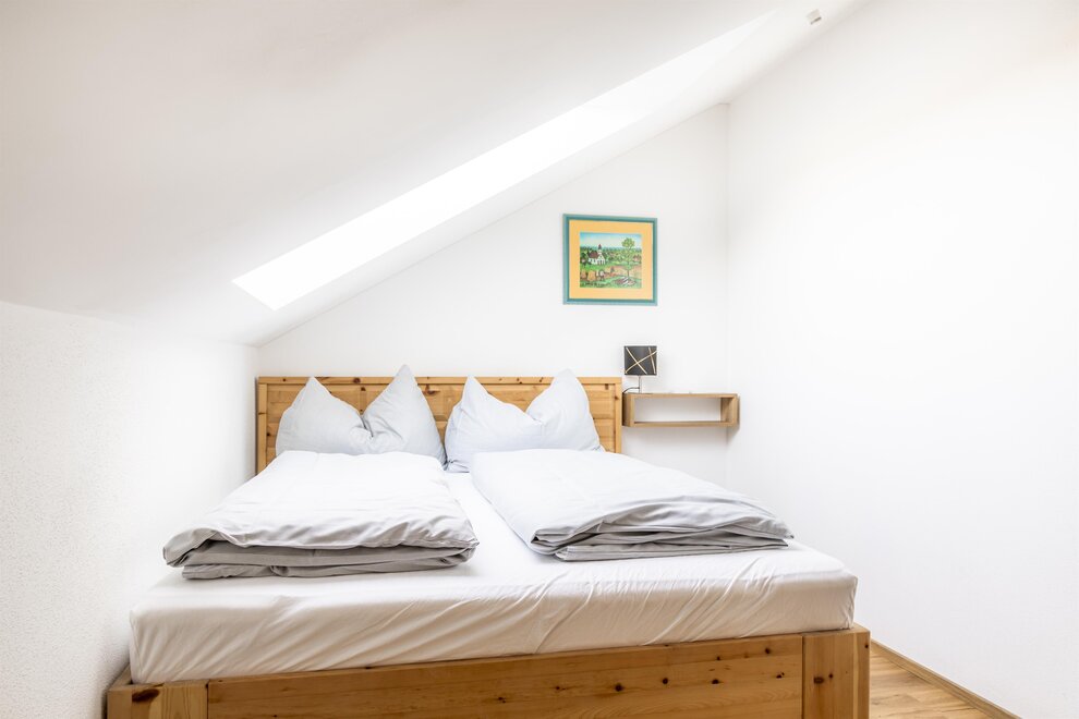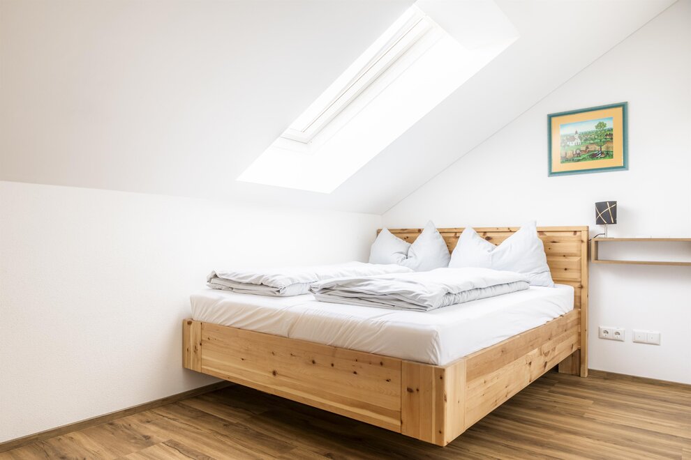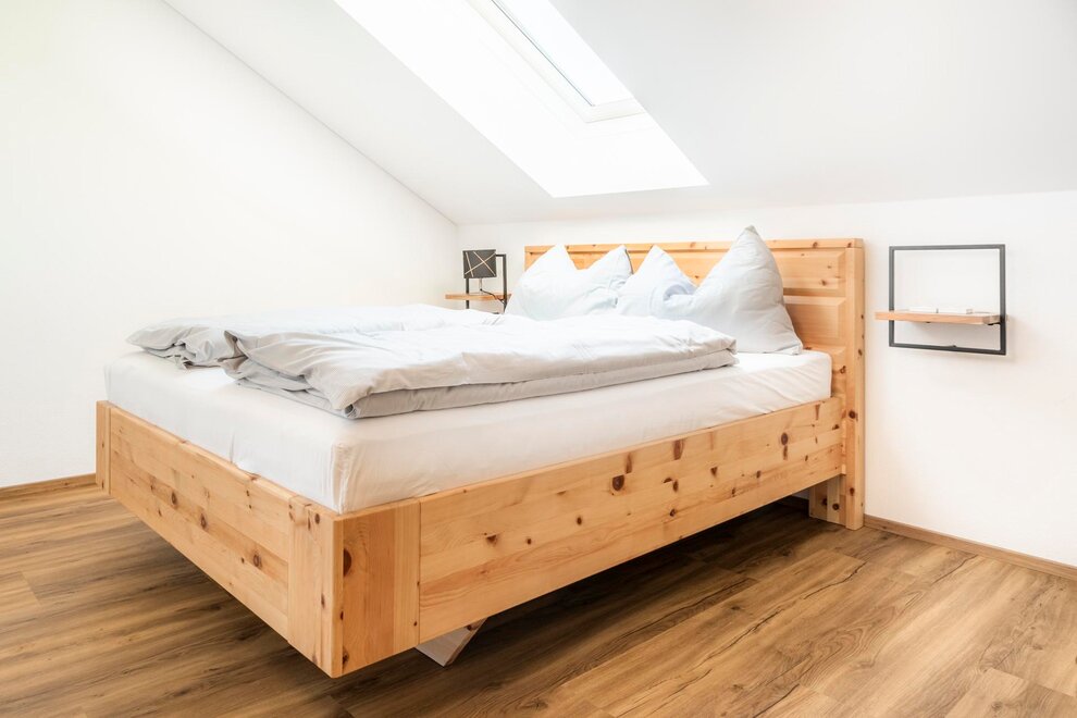 The holiday apartments are 65 m² and 55 m² in size. Each apartment features two bedrooms, a kitchen, a bathroom, a toilet, and a balcony with a view of our meadows and the mountains.
