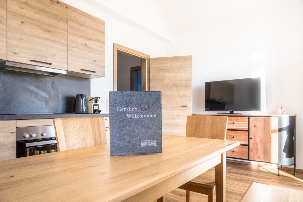 The Nord apartment is 65 m² and offers a magnificent view over the meadows all the way to the Tennengau mountains.