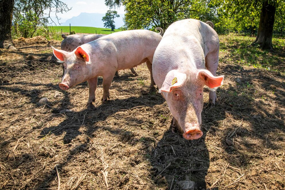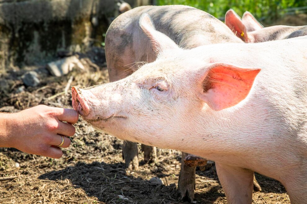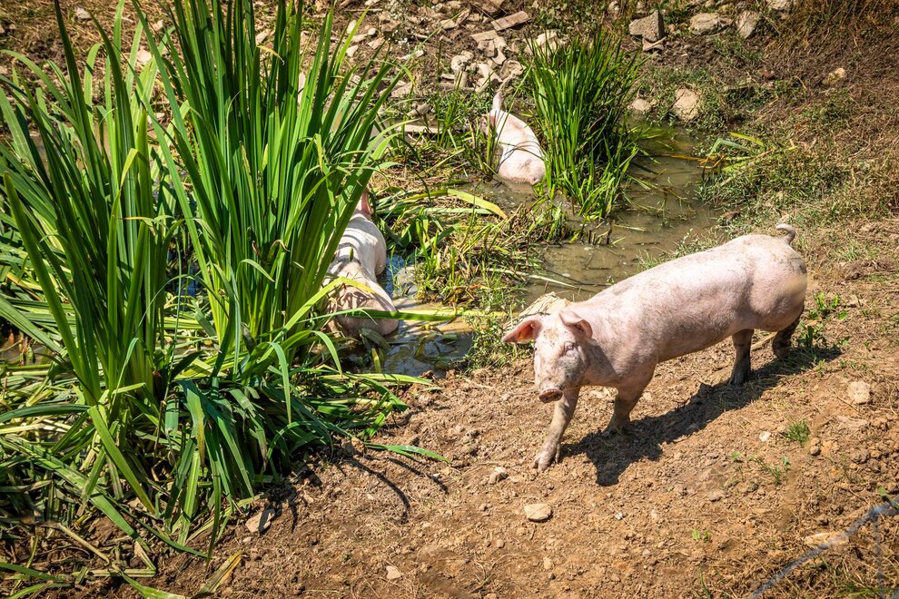 Our organic farm is home to 35 dairy cows, 10 calves, 4 pigs, 2 sheep, around 40 chickens, cats, rabbits, and 2 dogs.