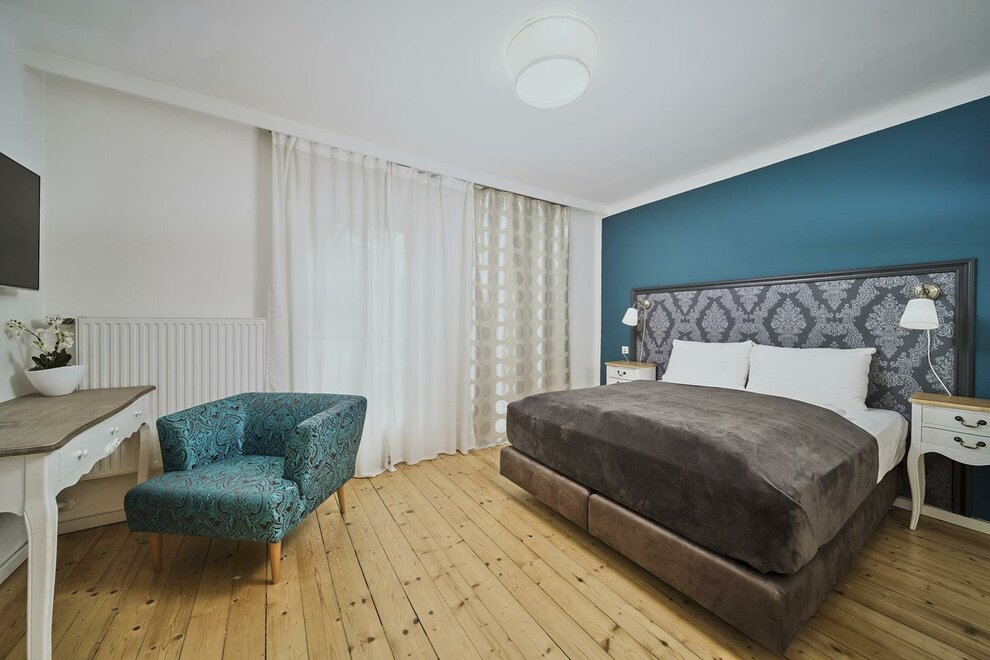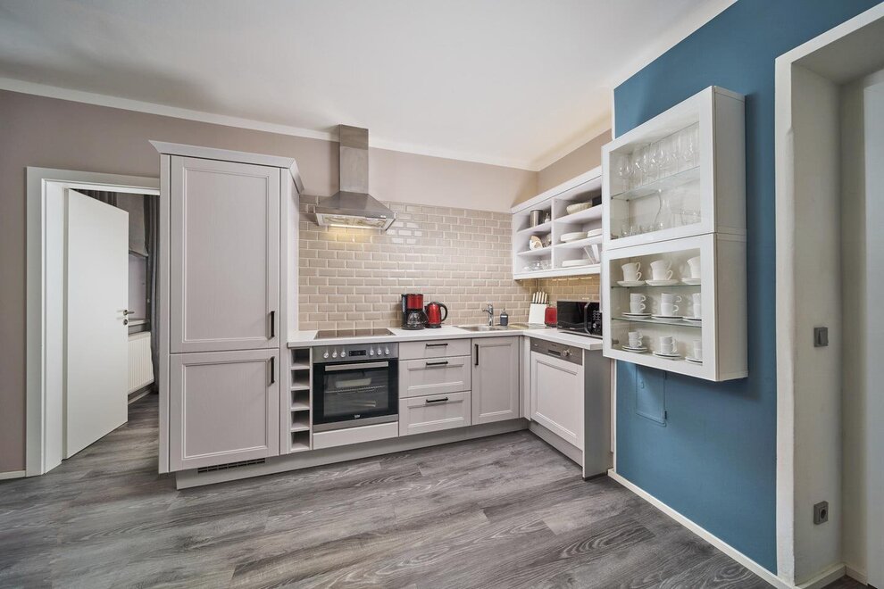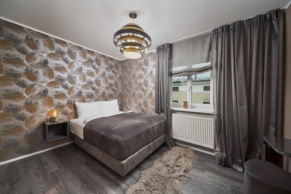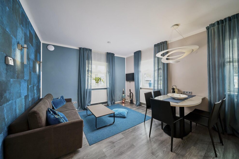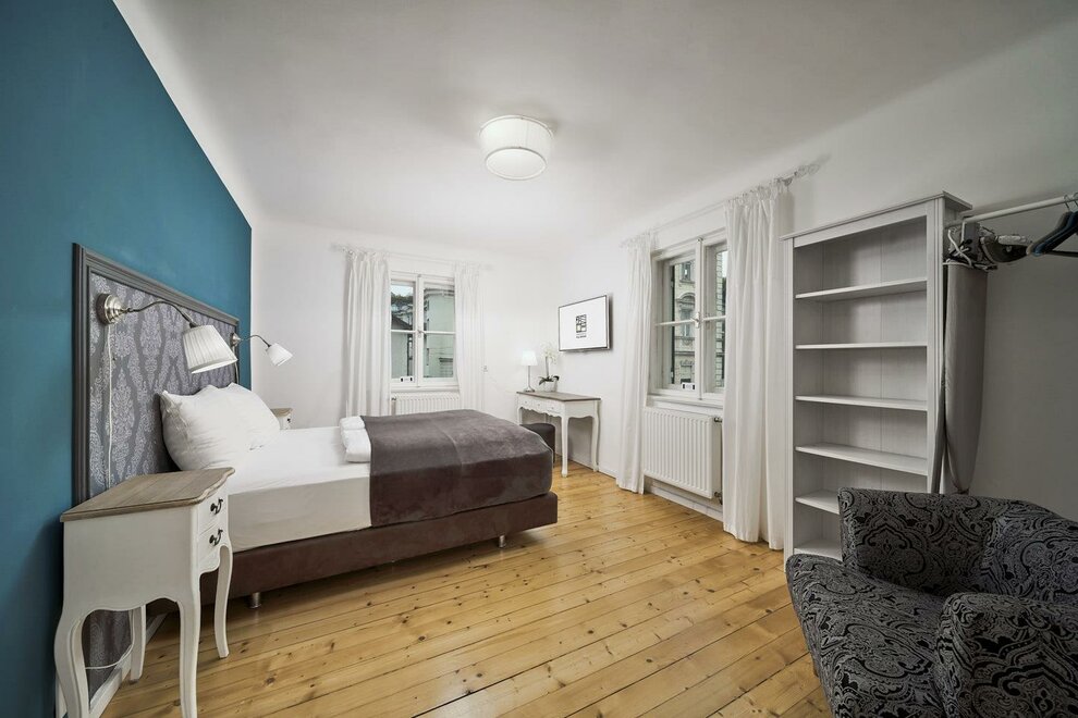 The apartment Mozart 3 impresses with a smart layout and turquoise-blue color accents. Spend your stay in Salzburg in the designer apartment.