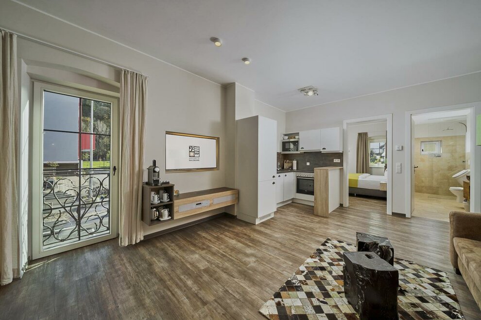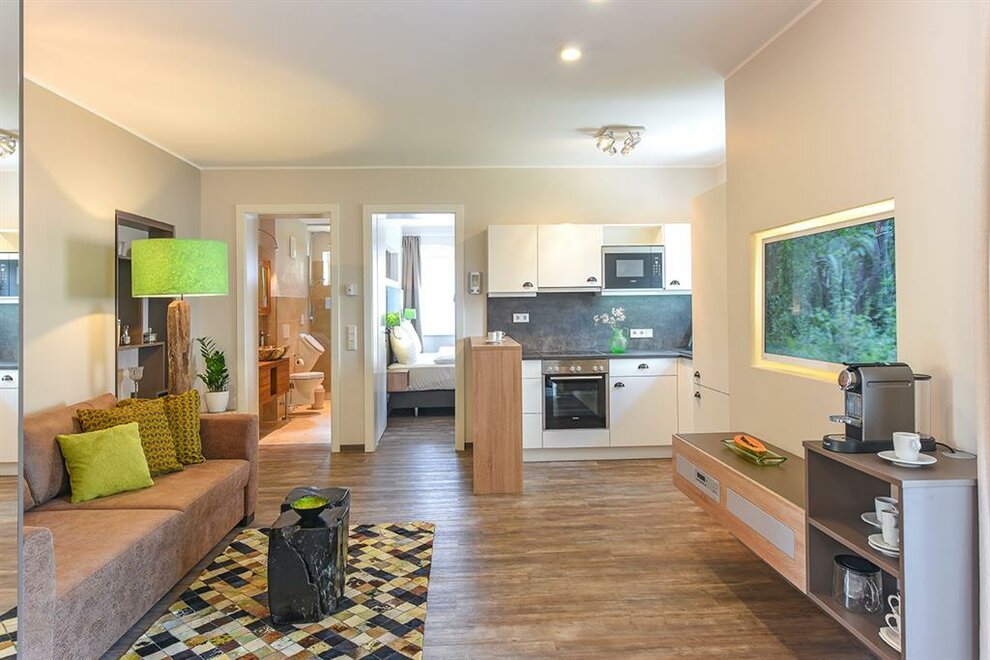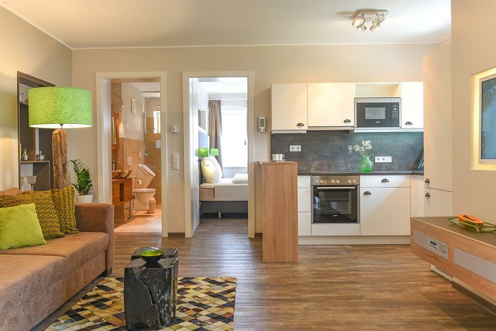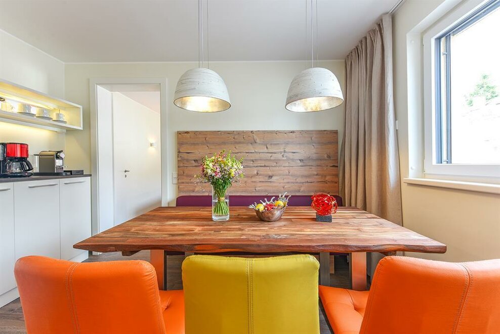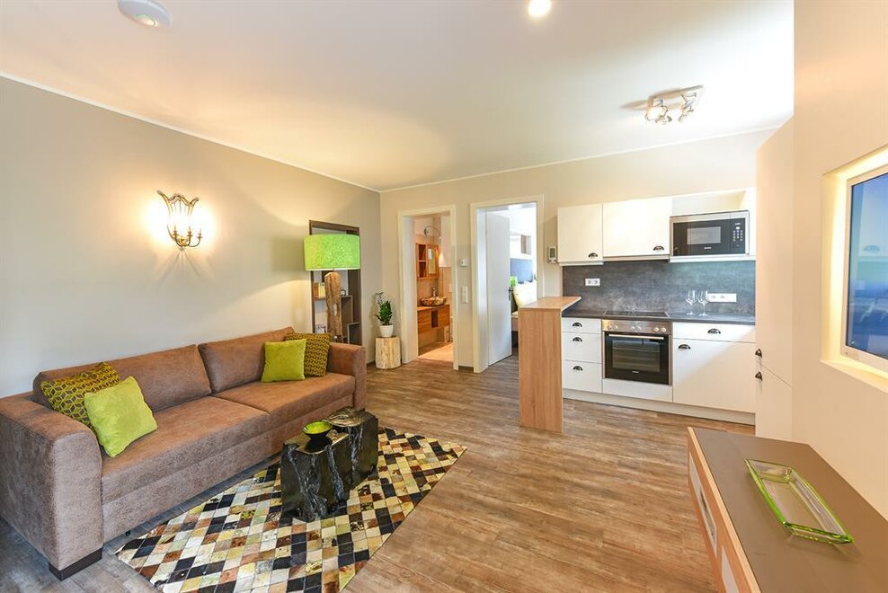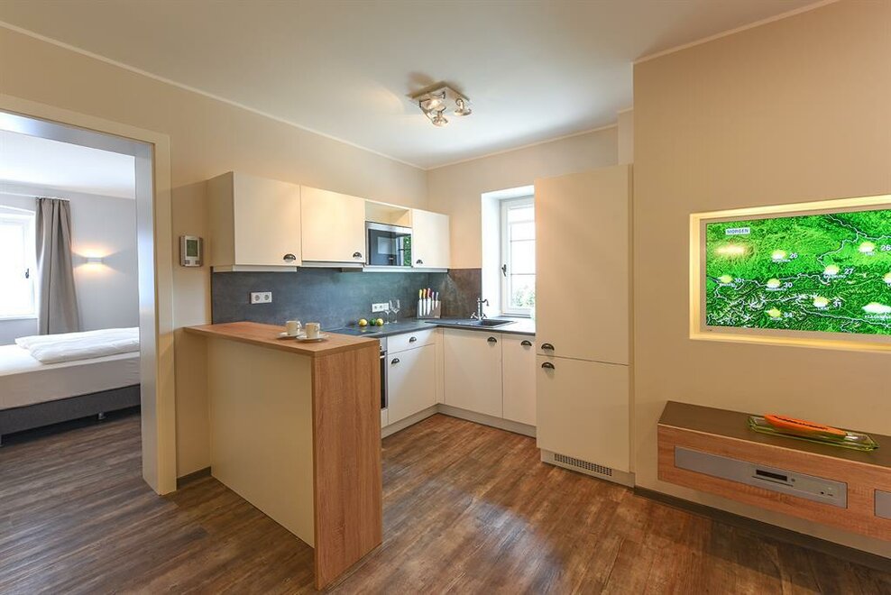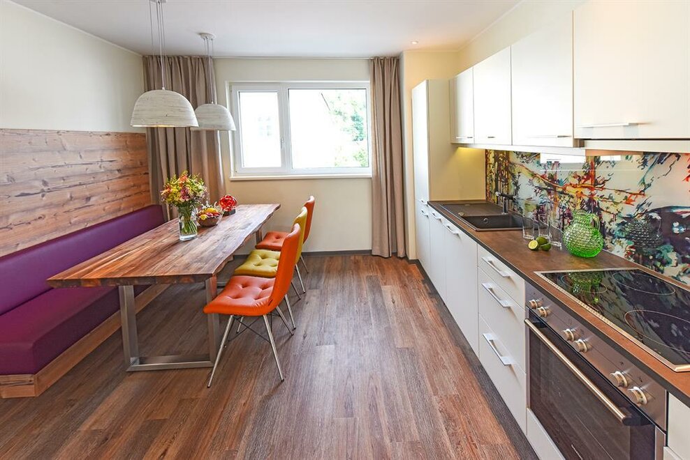 Enjoy clear lines and ample space for the whole family or a group of friends in the Apartment Mozart 1. The cozy living kitchen and the sand-colored concept create an atmosphere of well-being right from the start.