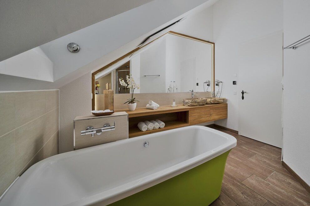 The apartment Mozart 4 is located in the attic of our old town house on Neutorstraße. The sloped roofs and sandy tones immediately create a comfortable atmosphere.