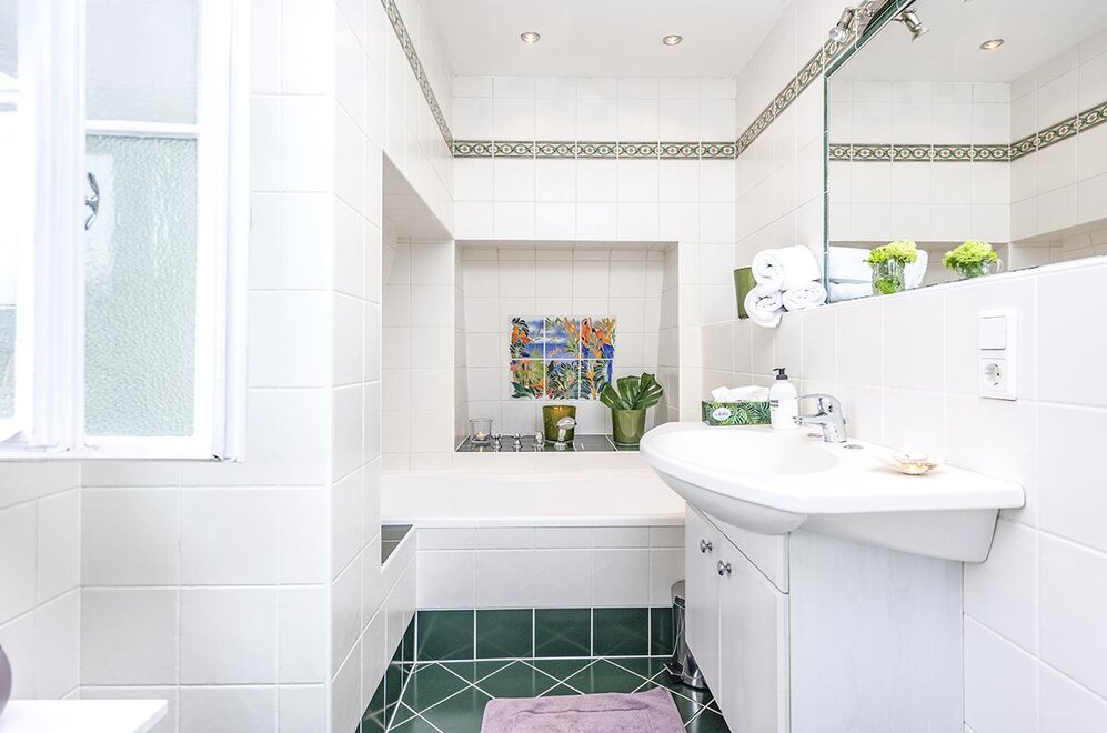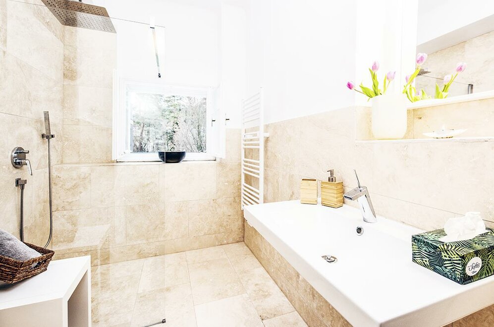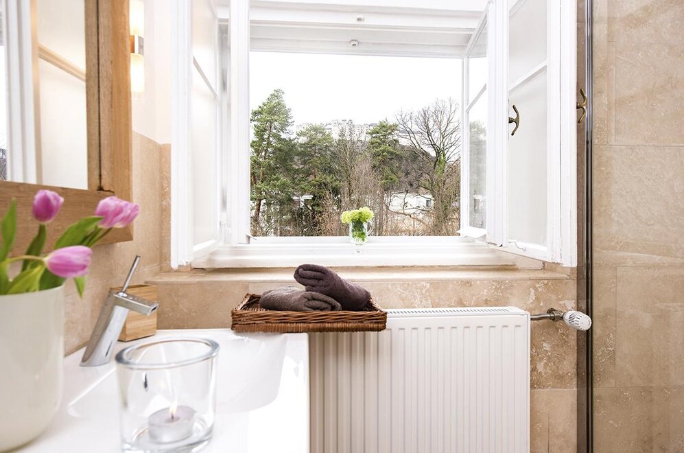 Three bathrooms with shower or bathtub invite you to romantic recreation and enjoyable hours in warm water. The four toilets in the house provide plenty of room and enough space for peace and privacy.