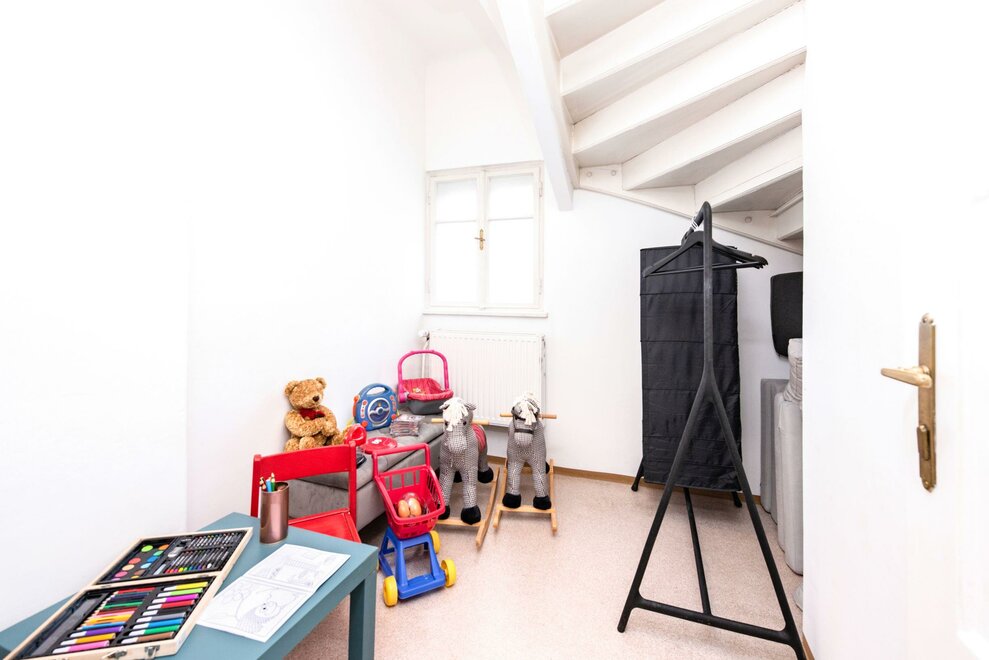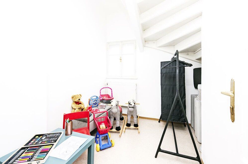 On the ground floor there's a bedroom and a bathroom with toilet and shower plus a wonderfully-equipped playroom for your kids – they will love it! As they have their own book corner, a special table for crafts, a rocking horse and even an original Carrera racetrack.