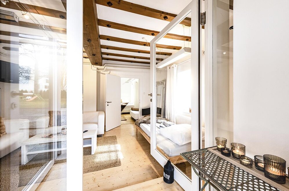 The large entrance area is a bright, sunny room and offers plenty of space for your wardrobe. Right on the ground floor you also find a lounge area for relaxing, equipped with state-of-the-art music boxes and flat-screen TV.