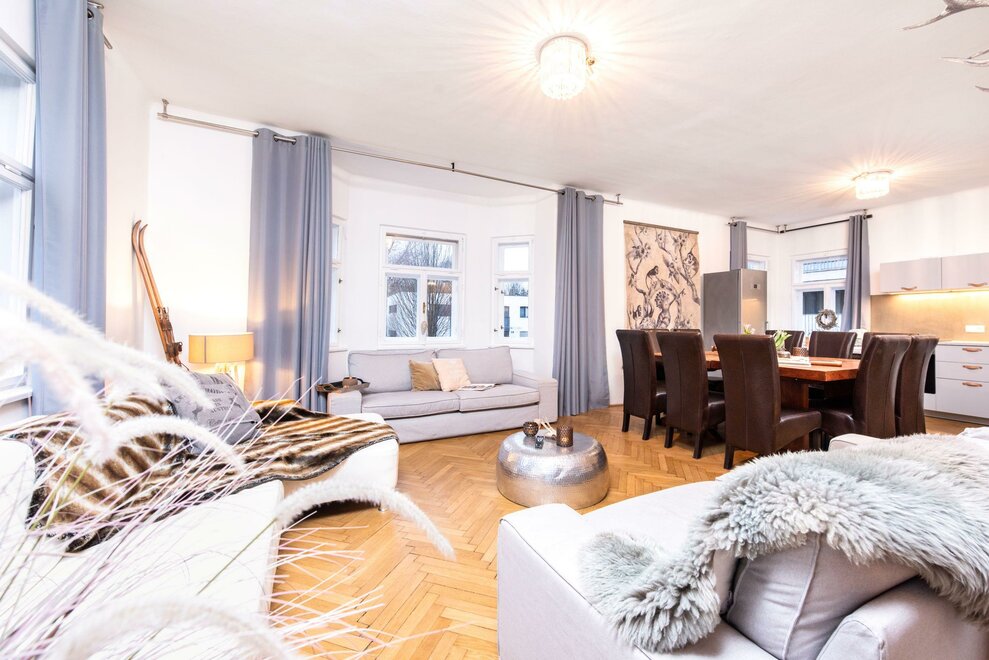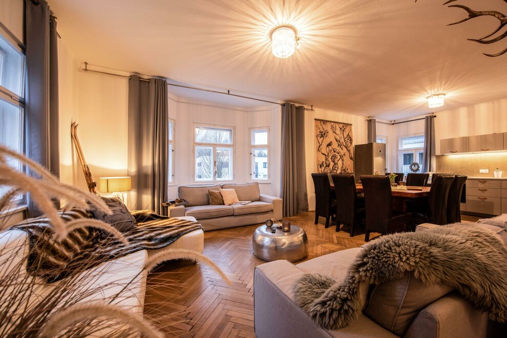 All in all, our Villa City offers five to seven bedrooms, four terraces and a balcony with a direct view of Salzburg mountains. So in any case you can spread out with your family or your friends and enjoy our comfortable ambience.