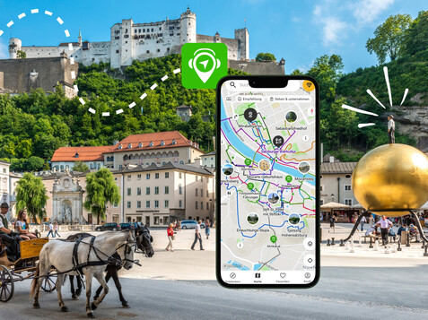 The city walk begins at the Salzburg Cathedral, which is connected to the DomQuartier. From there, the route leads to Mozartplatz, where you can find the official UNESCO plaque. Next, you’ll head up to Nonnberg and continue to the Hohensalzburg Fortress, which can be visited either during the walk or afterwards. The path then takes you to the Abbey of St. Peter, past the Festival Halls, and through Salzburg's characteristic alleys, squares, and passageways to Mozart's birthplace. Crossing the Salzach River, you’ll reach Linzer Gasse and St. Sebastian’s Cemetery. The journey continues through the Mirabell Gardens and back across the river to the left bank of the Old Town, where the Augustiner Bräu Mülln offers a perfect spot to unwind. For those who wish, a climb along the old city walls to the Mönchsberg provides breathtaking views over the Old Town.