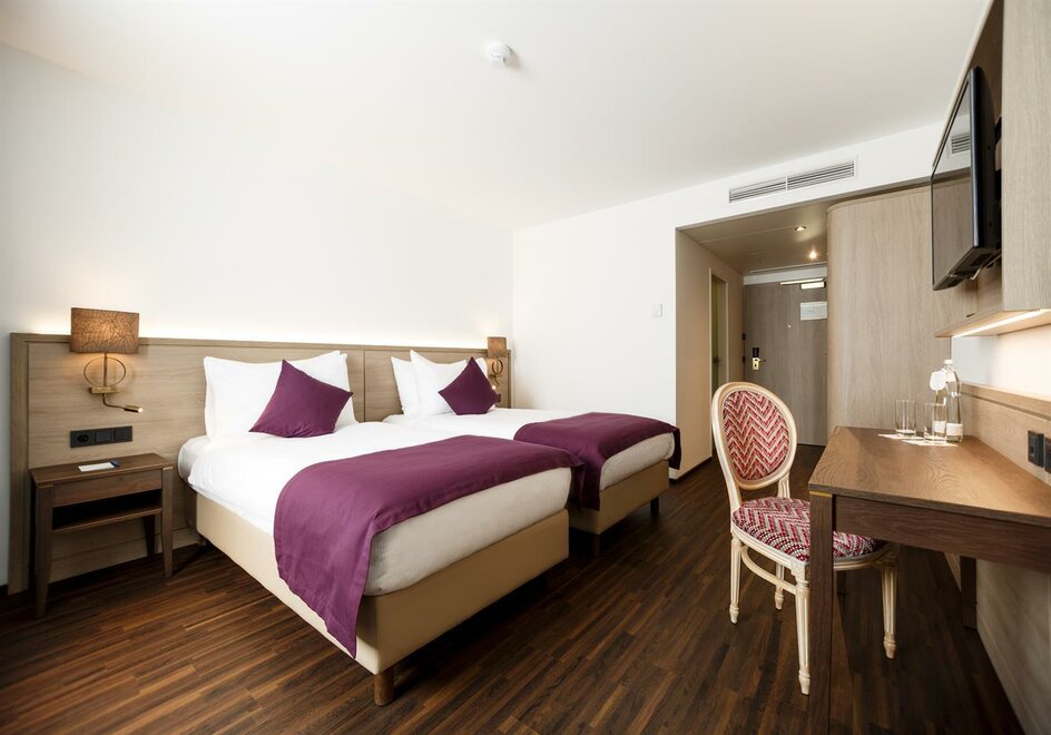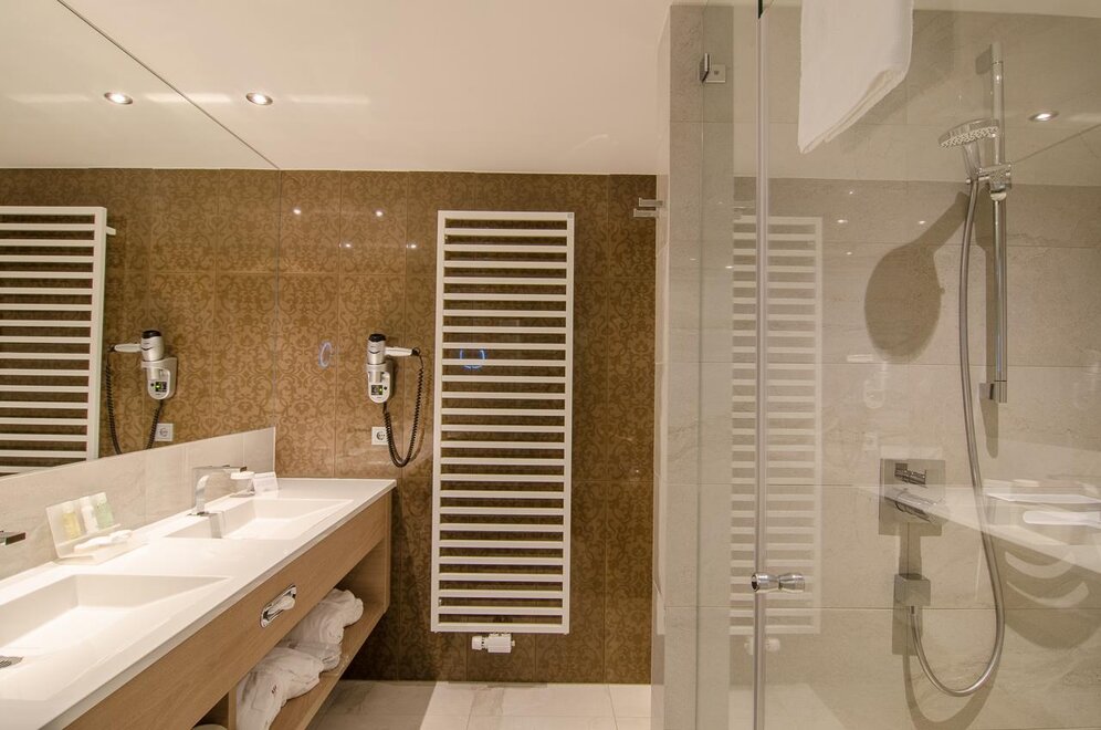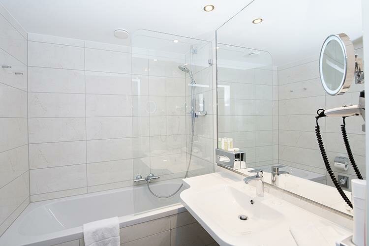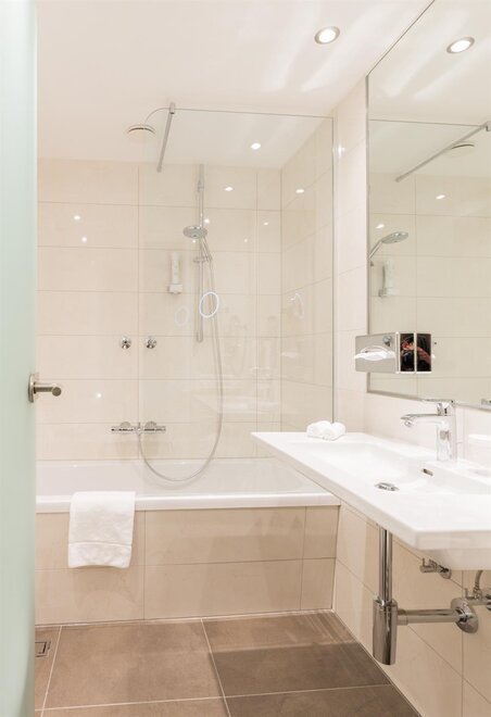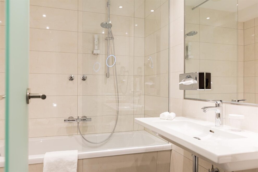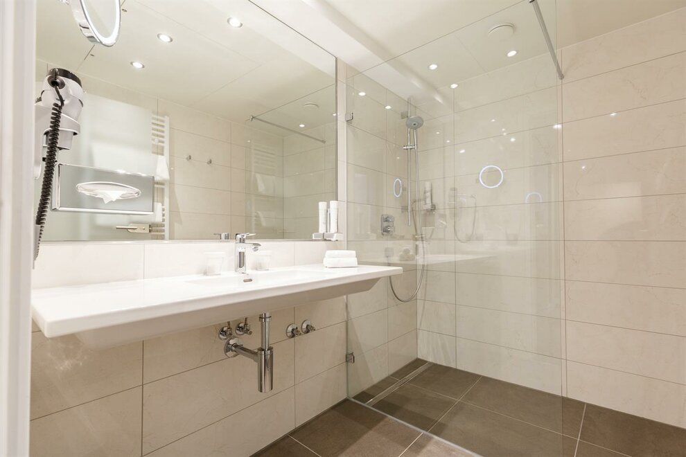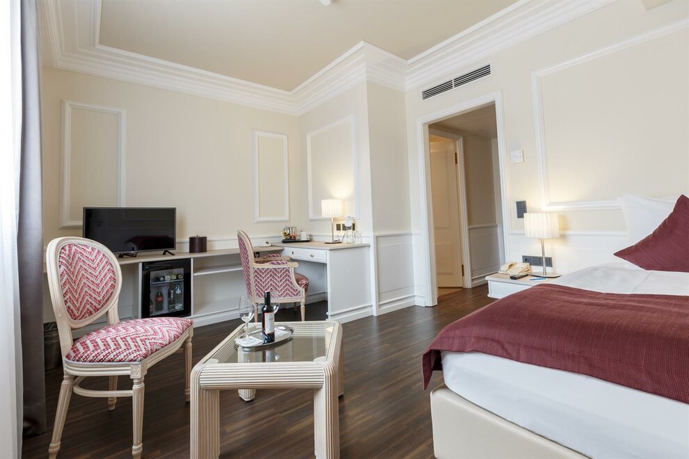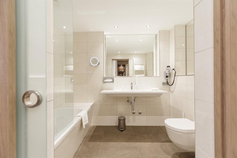 Caja fuerte, Productos de baño, Teléfono en habitación, W-Lan, Aire acondicionado, Secador de pelo, Televisor, Espejo de maquillaje, Albornoz, Hervidor de agua, Lenceria de cama hipoalergenica