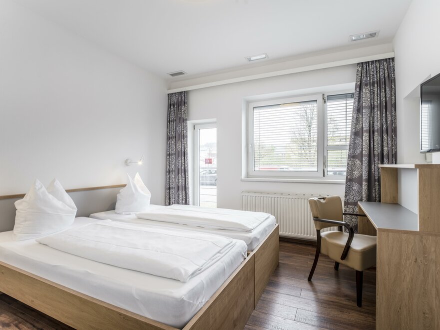 Nos chambres doubles nouvellement rénovées sont équipées d'une douche/WC, d'une télévision et d'un accès Internet gratuit dans la chambre. Le prix de la chambre inclut le parking.