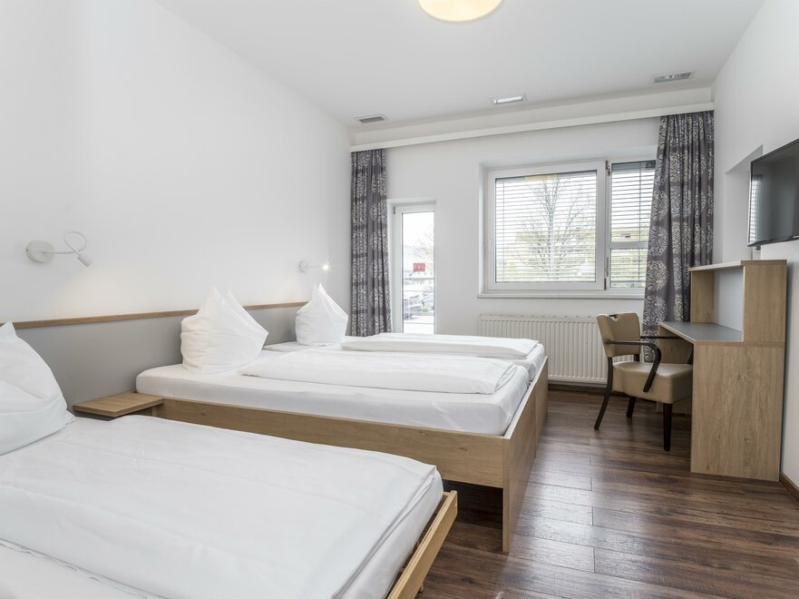 Les chambres à deux lits avec lit d'appoint de l'auberge Kolping à Salzbourg sont équipées d'une douche/WC, d'une télévision et d'un accès Internet gratuit dans la chambre. Le prix de la chambre inclut le stationnement.