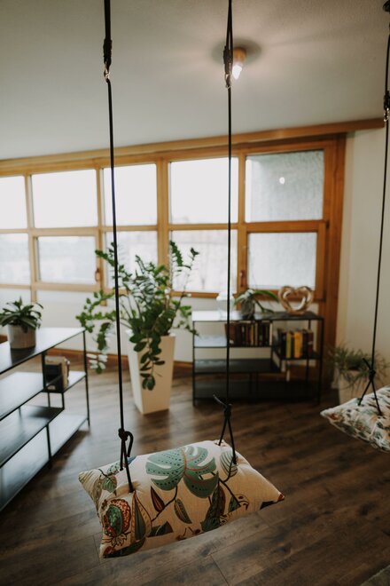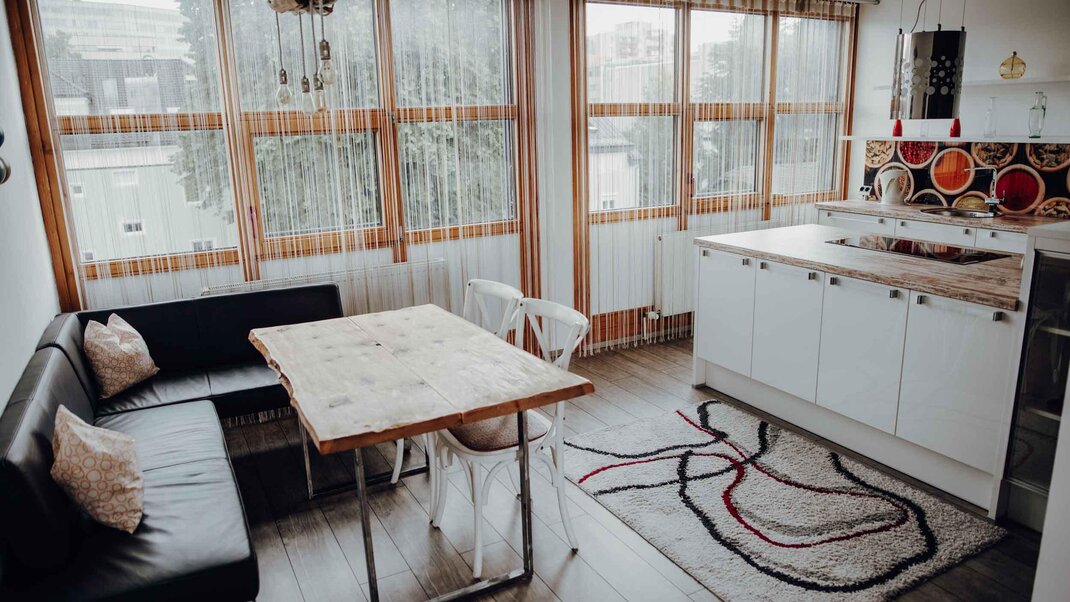 Notre appartement entièrement équipé dispose d'une terrasse sur le toit, d'un balcon, d'un salon et d'une chambre séparés, ainsi que d'une cuisine et d'un coin repas. Pour le premier café du matin, une machine à capsules NESPRESSO est à votre disposition dans la chambre.
