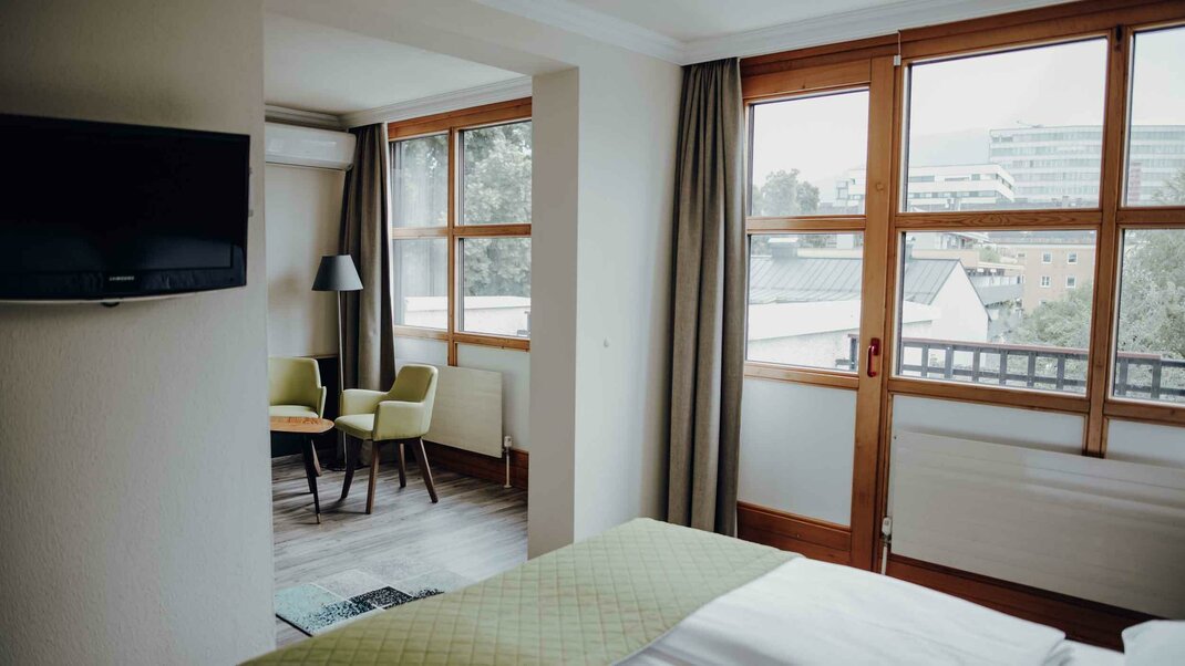 Profitez de votre séjour à Salzbourg dans nos chambres supérieures spacieuses. De votre balcon, vous pourrez voir le parc pittoresque et calme. La chambre élégante est équipée de 2 lits, d'un coin salon confortable, d'un balcon, de la climatisation, d'une machine à café NESPRESSO et du Wi-Fi. Certaines des salles de bains entièrement équipées disposent de toilettes séparées pour votre bien-être.