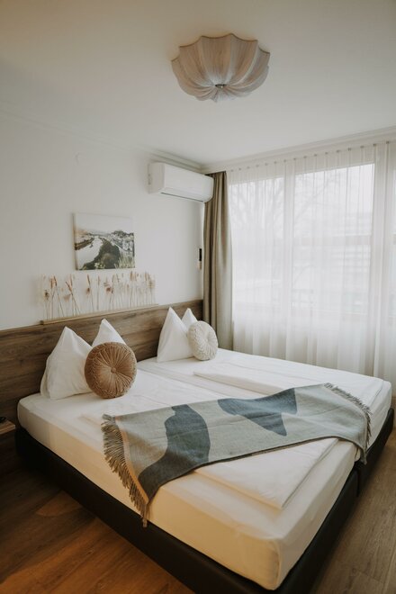 Profitez de votre séjour à Salzbourg dans nos chambres Supérieures spacieuses. Depuis votre balcon, vous pouvez voir la ville et la montagne locale. La chambre élégante est équipée de 2 lits, d'un coin salon confortable, d'un balcon, de la climatisation, d'une machine à café NESPRESSO et du Wi-Fi. Certaines des salles de bains entièrement équipées disposent de toilettes séparées et veillent à votre bien-être.