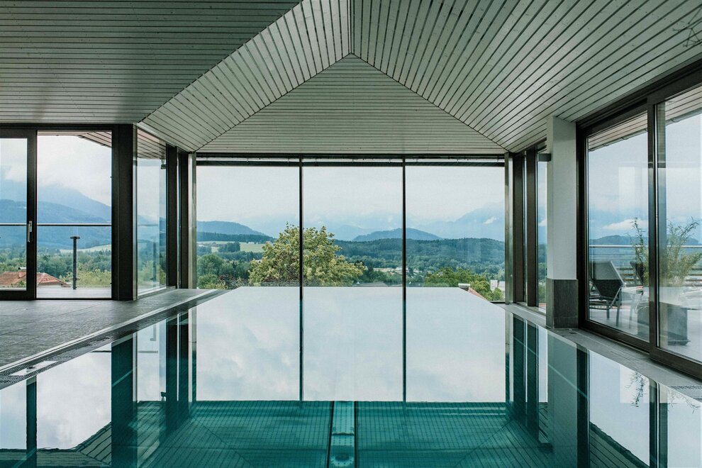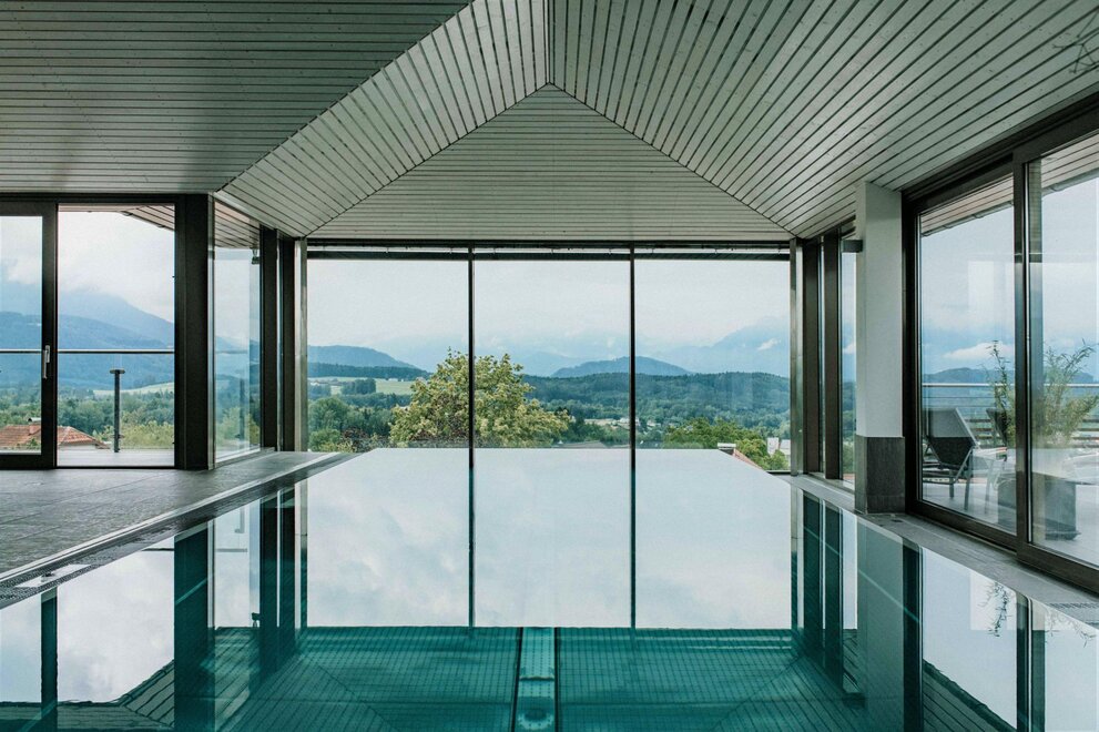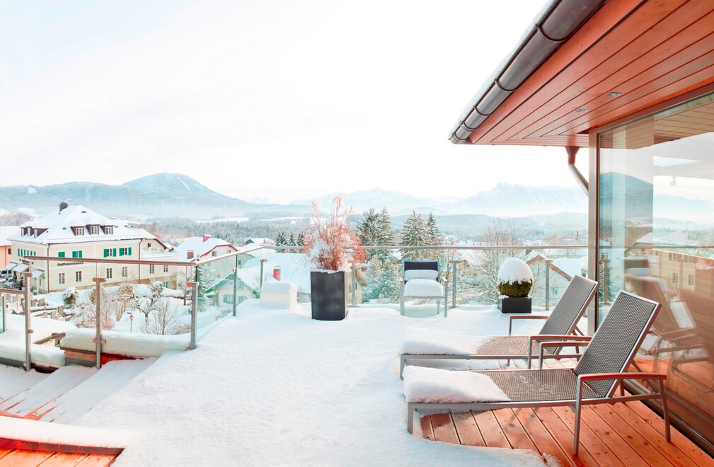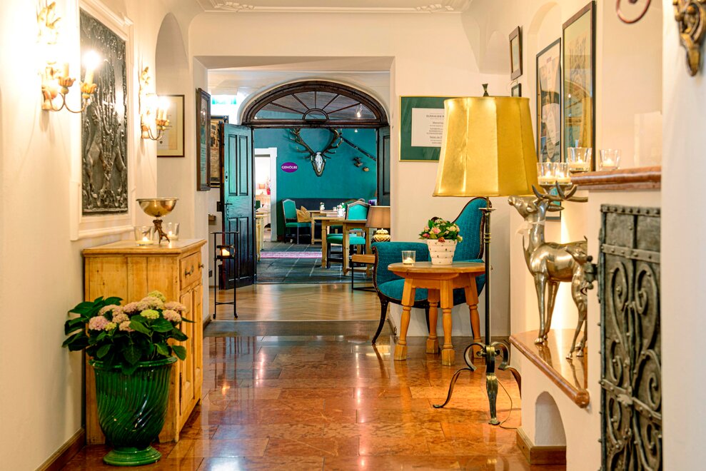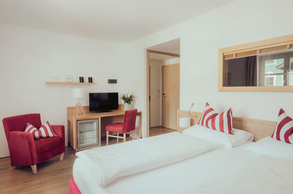 Suite in the "Klosterhof" with panorama view of the Austrian Alps, aprox. 47 m², bathroom with shower/toilet or bathtub/toilet, hairdryer, scale, wake-up service, free WLAN, telephone, flat screen with cable TV including Sky, radio, desk, 2 bathrobes, slippers, some with mini-bar, balcony or terrace.